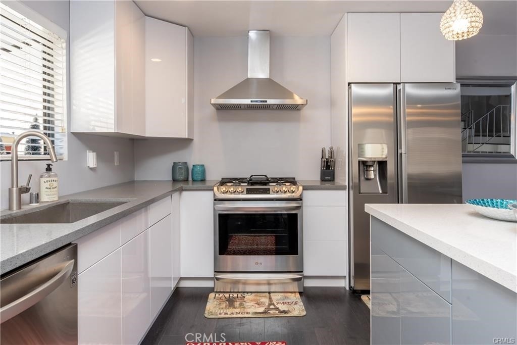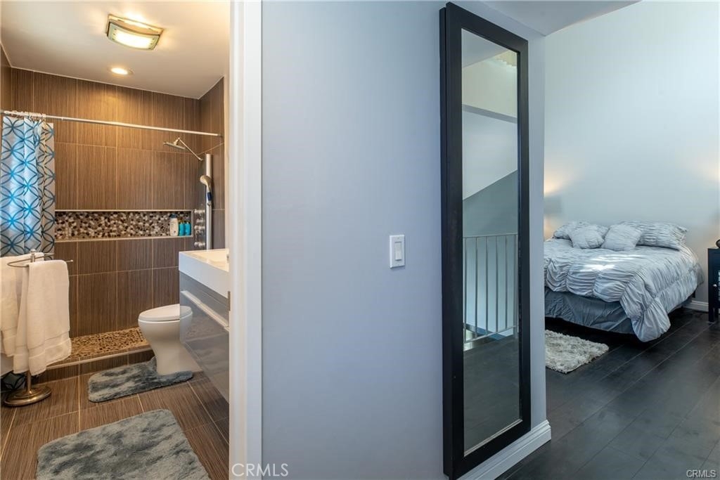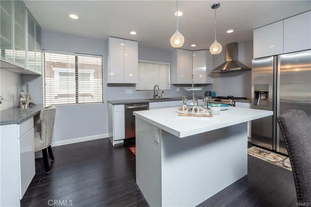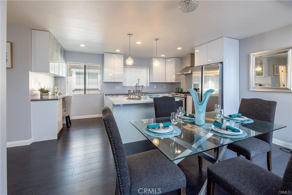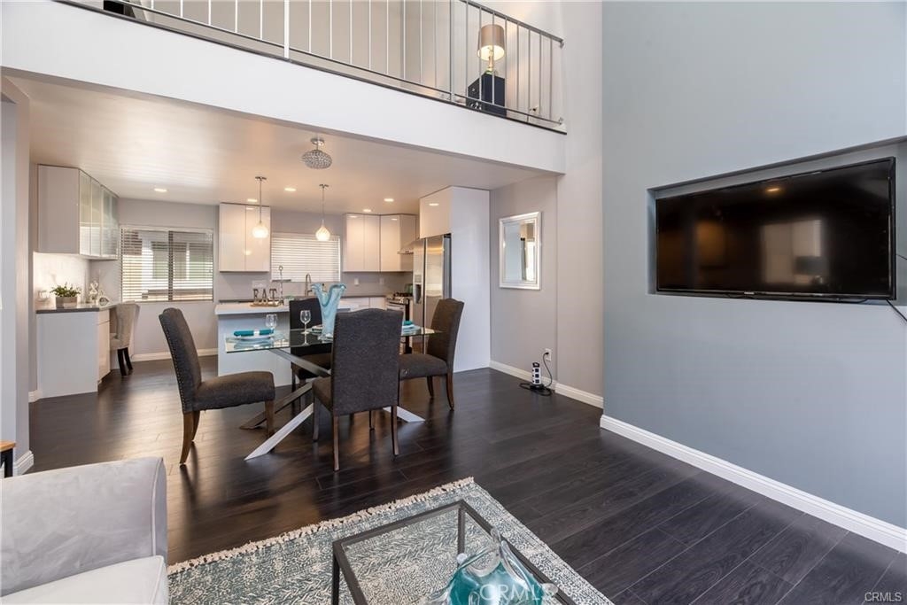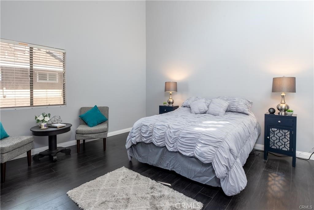 End unit, high ceilings and very bright natural lighting(south facing) and dark laminate floors. the kitchen is open to the family room and fully renovated with modern european custom cabinetry detailed with hidden, lazy susan for extra space and ease of use. The large island not only has abundant storage but also entertains as a sitting bar. The counter tops have been replaced with beautiful, speckled quartz and all of the stainless steel appliances(cooking oven, dish washer, refrigerator and oven). Upstairs you will have master bedroom and loft retreat which includes newly remodeled modern european designer dual sink floating vanity and fully renovated jet shower. Master bedroom has master bed and bed sets including lightings. the guest bathroom is also remodeled with floating vanity. Fight off the heat with the home's energy efficient mini splits which cools the entire home. Nest to shopping center and delicious restaurants. Just move in body with bags only but don't forget to bring swimming costume(HOA pool and spa).