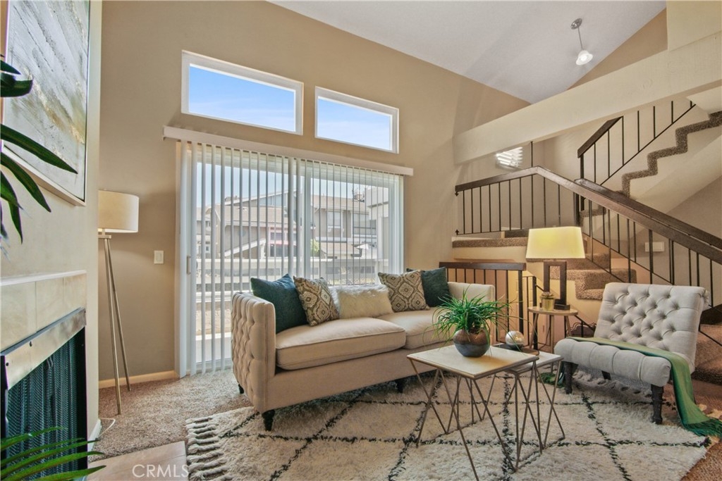 Welcome home to this turnkey, tri-level unit located in a highly desirable and well-maintained complex in La Habra. This large, loft-style unit features a bedroom with a full master bathroom, plus an additional 1/2 guest bathroom. The spacious kitchen has white cabinets, a greenhouse window and plenty of cabinet space. This condo is packed with great amenities including a direct access 2 car garage located directly under the unit, central air-conditioning, vaulted ceilings, travertine flooring, newer carpet, mirrored closet doors, a fireplace, and laundry hook-ups with sink and storage cabinet. This end unit is light and bright, there is no unit above or below The location is convenient to shopping, restaurants, and much more!