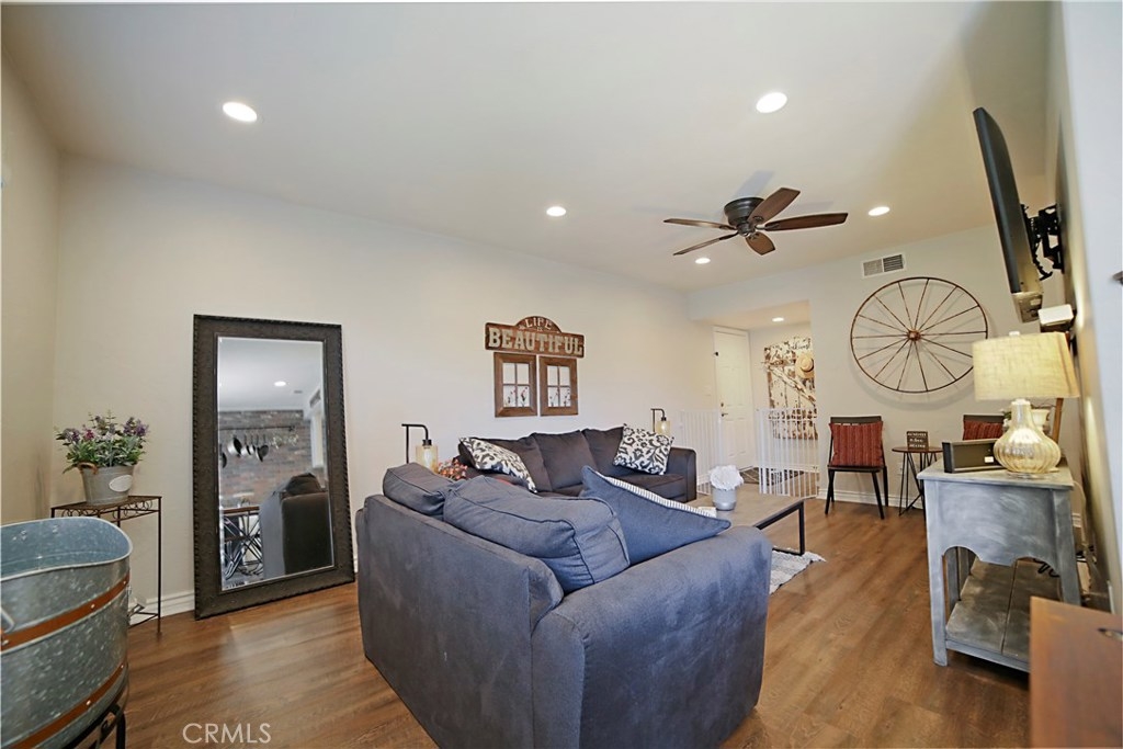 Welcome to the Beautiful Creekside Village Condominium Complex!!! This Gorgeous ground level unit features 1 large bedroom, 1 full bathroom, spacious vanity area, walk-in closet, nice laminated vinyl wood floors throughout, newer kitchen cabinets with tasteful rustic hardware, quartz counter tops, brick backsplash, stainless steel appliances, recessed lighting, ceiling fans, tasteful color combinations and inviting décor, relax in your private patio area or take advantage of the community pools and BBQ areas. Parking includes One assigned carport in gated area with storage, Centrally located to shopping, restaurants, and movie theaters. HOA includes water, trash, gas and outdoor common area maintenance.