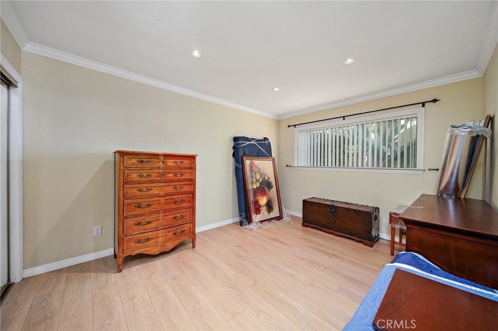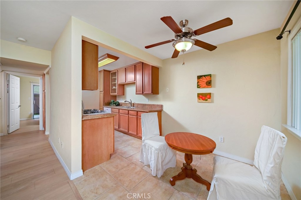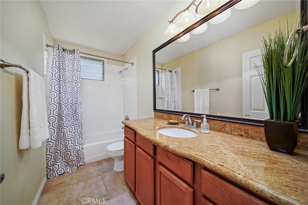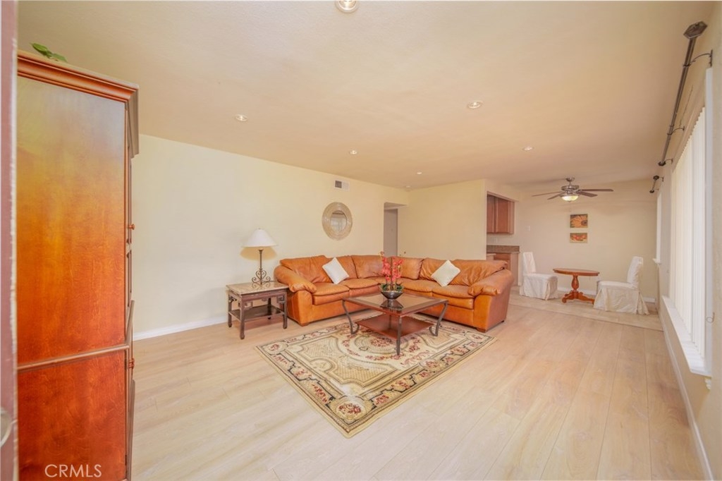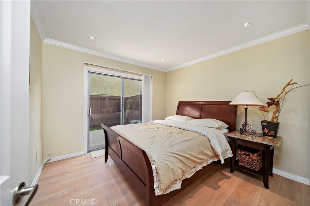 Great location, rare chance for a GROUND LEVEL, END unit, only attached on 1 side, away from the street! (Google maps is wrong.) More secure with Gated Parking and Controlled Access to community. Whole community was updated in 2005. Walk from car to condo with only one small step up. Comfortably large living room. Updated kitchen & bathroom with maple cabinets, granite counters, & beautiful tile floors. Fairly new dishwasher. New elegant bathroom vanity light & towel fixtures. New door handles. Remodeled fiberglass shower with copper plumbing, cast iron tub, & tiled walls. Updated flooring of beautiful laminate wood is only allowed on downstairs units per HOA rules. Recently painted. Recessed lighting. Ceiling fan. Central heating and air. Mirrored closet doors. Sliding glass door to a tropical oasis in the patio, open to above. One of the best units. Enjoy the pool & BBQ right outside. Can walk your pet along creek next to community. Storage at parking & lower storage possible. Water, Trash & Gas paid by HOA. OC property taxes are lower than LA County.