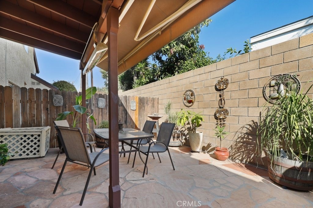 This “Move in Ready” Condo is located in the Beautiful “Erna Del Place” community in La Habra. Walking in to the Town home from your own covered carport makes, this unit feel very private. When you enter the home, you are welcomed with beautiful wood flooring in Living Room & Stairs. The living space is very light and cheerful due to a large plate glass, shuttered window and recessed lighting. You than enter into the dining area, which is open to a good-sized kitchen with more, recessed lighting that also offers a sizable Laundry room. The dining area has a generous sliding glass door that bolsters even more light and goes out to a beautiful patio, equipped with terra Cotta tiles. There is a good-sized powder room downstairs for guest. Upstairs you find 2 very spacious Bedrooms and a Bath. There are new Windows throughout home. The unit comes with a 1 car garage, covered carport and ample guest parking. The community has only 19 units that are nicely nestled in a hidden space for added privacy. Community is quiet and well kept.