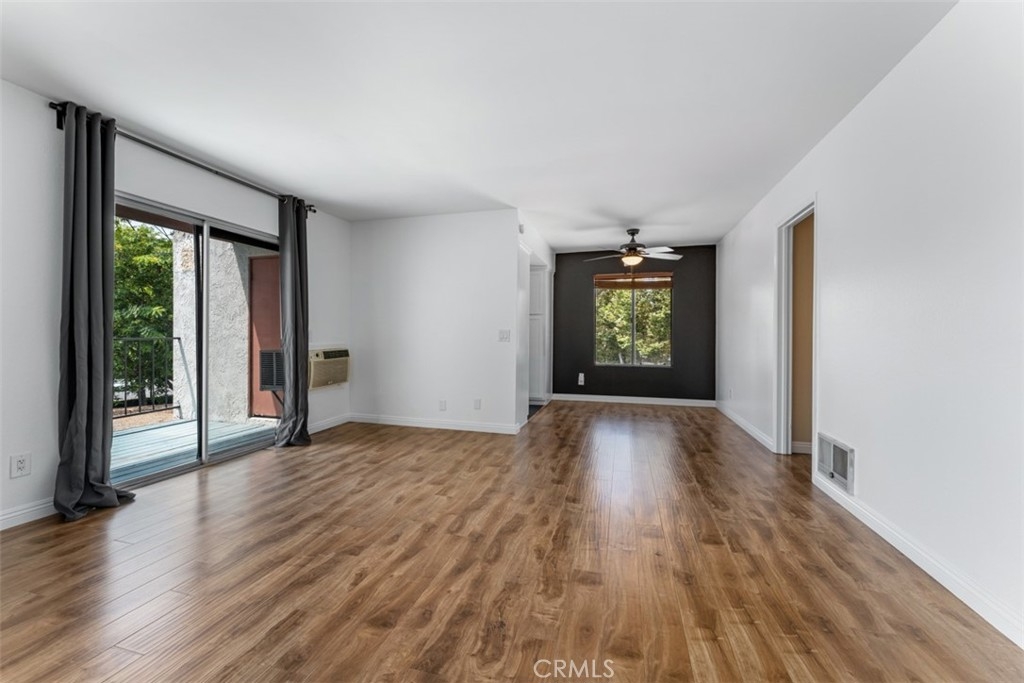 Upgraded 2-bed, 2-bath upstairs end unit condo with 2-car detached garage. Community offers a large pool, spa, and laundry. Granite countertops, custom backsplash, built-in microwave in kitchen. Laminate and tile flooring throughout. Cozy living room fireplace with gas log set. Enjoy hillside views from the lovely patio with storage. Spacious master bedroom with ample closet space. Additional large linen closet in hallway. Prime location: walk to shopping, transportation, movies, and restaurants. Exceptional value awaits! HOA covers: Water, Trash, Gas
