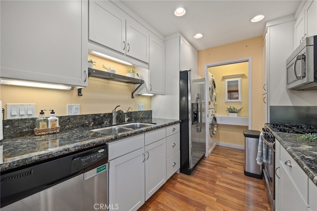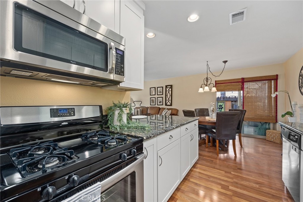 This beautiful turnkey single level condo located in the Fashion Walk Community of La Habra features 1,152 Sq. Ft. of living space consisting of 3 bedrooms with 2 bathrooms. The main bedroom is very sizable and boasts an agreeable sized walk-in closet with its own En suite main bathroom, granite sink vanity, tiled floor and a walk-in shower complete the package. Updated galley style kitchen with granite counters, recessed lighting, microwave, gas stove, dishwasher, breakfast bar, additional features include an inside laundry area for a full-size stackable washer & dryer, central air & heating, one detached car garage that is close to the unit and one designated parking space, ceiling fans in all 3 bedrooms, carpet, tile and laminate wood floors, private outside patio, this gorgeous and well-maintained home has only one shared wall and has no immediate units above or below you for your comfort. The HOA includes water, trash, and all outside maintenance, with swimming pool and clubhouse that are just a few steps away and yet far enough for your relaxation. You will be conveniently located to an abundance of shopping, entertainment, dining, parks, golfing and a host of professional services in the area. WELCOME HOME!