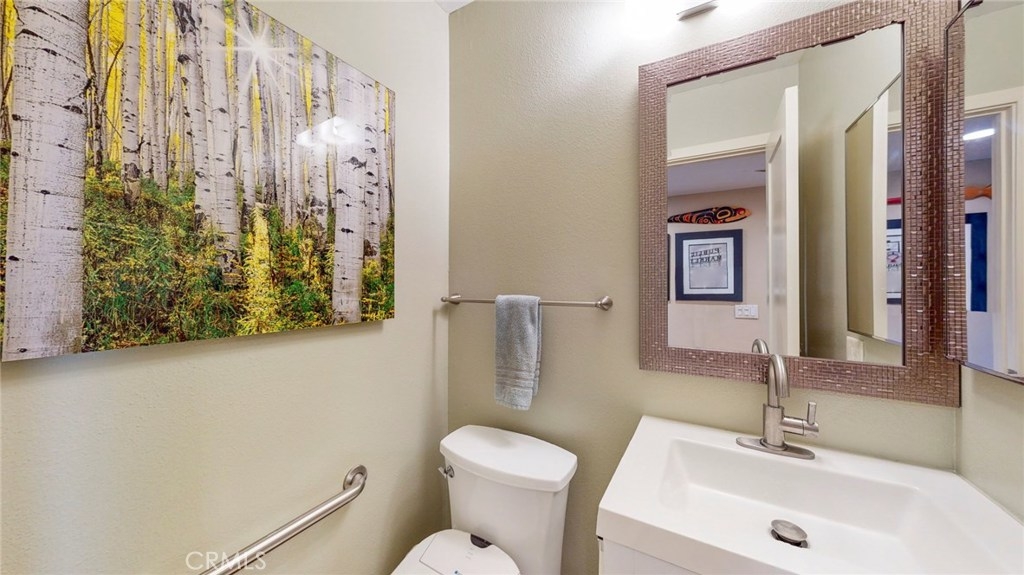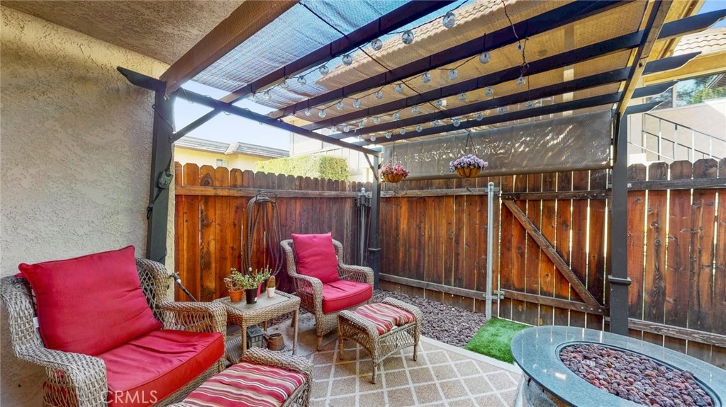 Wow! Orange County for under $500,000? This is a rare find. You will be blown awayby this fully remodeled kitchen with quartz waterfall island open to the family room. The white shaker cabinets, the glass tile backsplash, the unique pendant lighting - this kitchen is custom top to bottom. The easy care flooring has that awesome beachy vibe that is all the rage. There is direct access to the attached one car garage from the great room. The great room offers plenty of space for your living and dining furnishings. The fenced patio is an oasis in itself with artificial turf and so much room you can bring in a patio cover (the one pictured is not a fixture). The inside laundry room is larger than you find in many houses, let alone a condo - room for full size washer and dryer + additional storage. The upstairs master bedroom is so spacious that the current owners have made it their retreat complete with large screen tv and "faux" fireplace. The walk-in closet is much larger than you will find in most condos, offering loads of storage options. The second bedroom makes a great guest room/office/ZoomRoom and shares the newly remodeled upstairs bathroom. If this weren't enough, both the water heater and HVAC have been replaced recently. There is an additional assigned parking space. HOA dues cover water, garbage, sewer, insurance + groundskeeping and exterior maintenance. You only pay gas and electric (and internet/cable). We can't wait to show this terrific home to you.