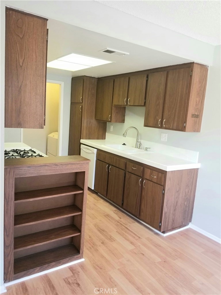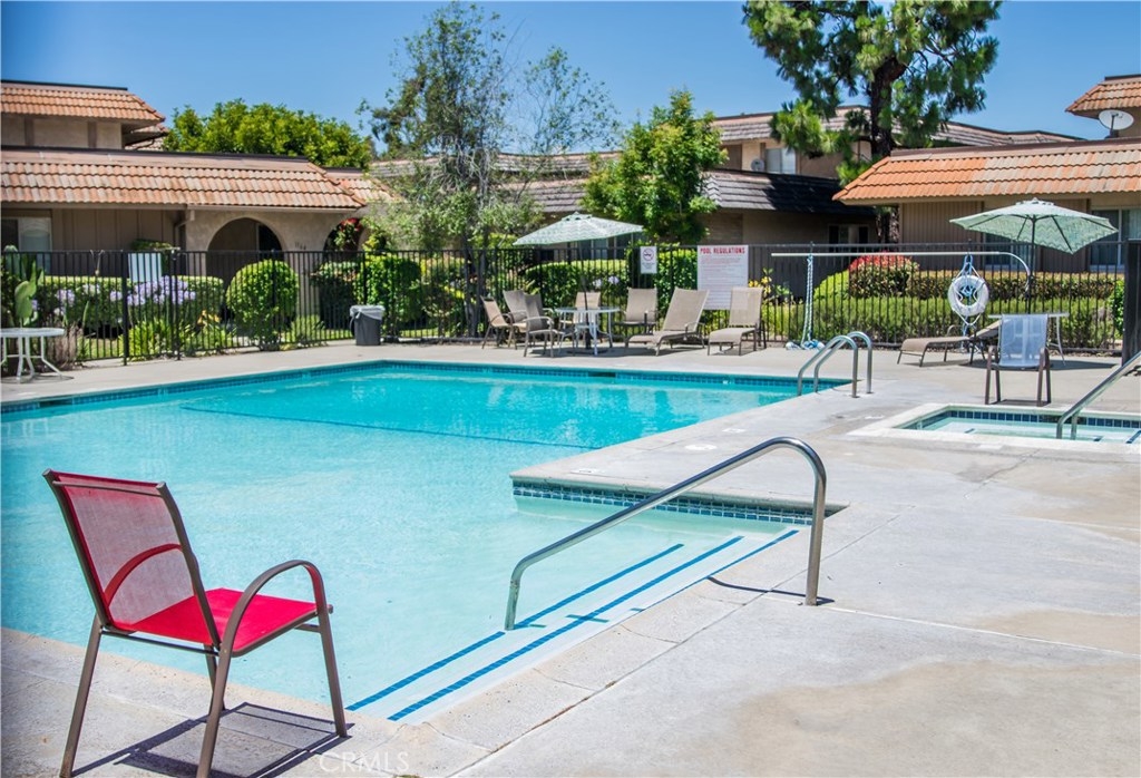 Here's a Great opportunity to own this single story 3 bed/2 bath open floor plan without any neighbors below or above you. This end-unit features lots of natural light, new laminate floors and fresh interior paint though out. Enjoy a spacious living room & dining area that leads out to a large enclosed patio. The kitchen includes a gas cooking range, dishwasher and plenty of storage & counter space. That's not all... Enjoy the conveniences of an in-home laundry room; washer & dryer included, a single car garage & an additional assigned parking space. This home also features a spacious Master bedroom with a large walk in closet and it's own master bath, two additional bedrooms with a full bath off of the hallway. Community features a large pool, and beautifully maintained grounds. Conveniently located to shopping, restaurants, schools, parks, and theater.