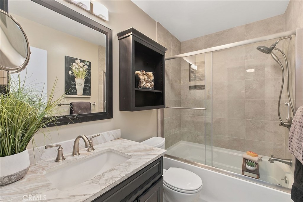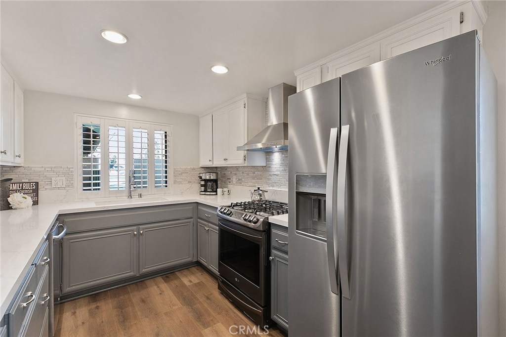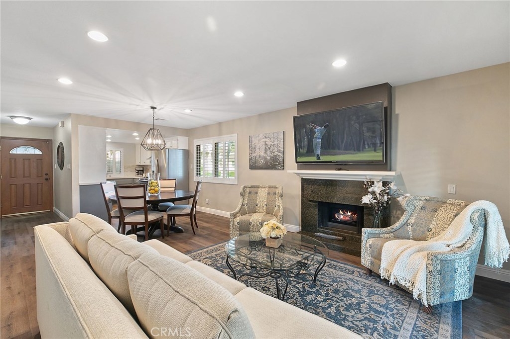 Can you see yourself living here? Beautifully appointed, single story Heritage Village condo - just add furniture and voila! You're home. Kitchen has been remodeled with gray and white cabinets, white quartz countertops and stainless appliances. Newer laminate flooring in that popular beachy greige that's all the rage right now. Open floor plan flows beautifully from kitchen to dining/living/great room with gas fireplace onto your own private patio. Entertaining (when we can once again) will be a breeze!! In the meantime, consider this your oasis - on vacation while you are at home. Both bathrooms have been beautifully remodeled. Plantation shutters throughout. Both bedrooms are generously sized. 2 car garage is connected via a private, gated, front patio (yes, you heard right - 2 patios). This corner unit feels almost like a detached single family home with lush green lawns and mature maple trees (and the HOA maintains them for you) and only one shared wall. Two community pools (during COVID pools can be used by reservation only) and a tot lot. Your HOA dues actually include cable television! Close to shopping, restaurants and theaters.