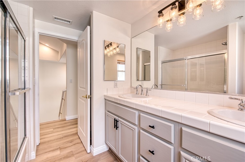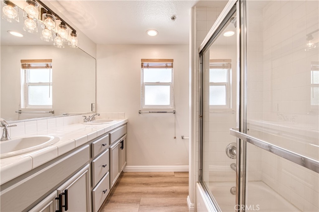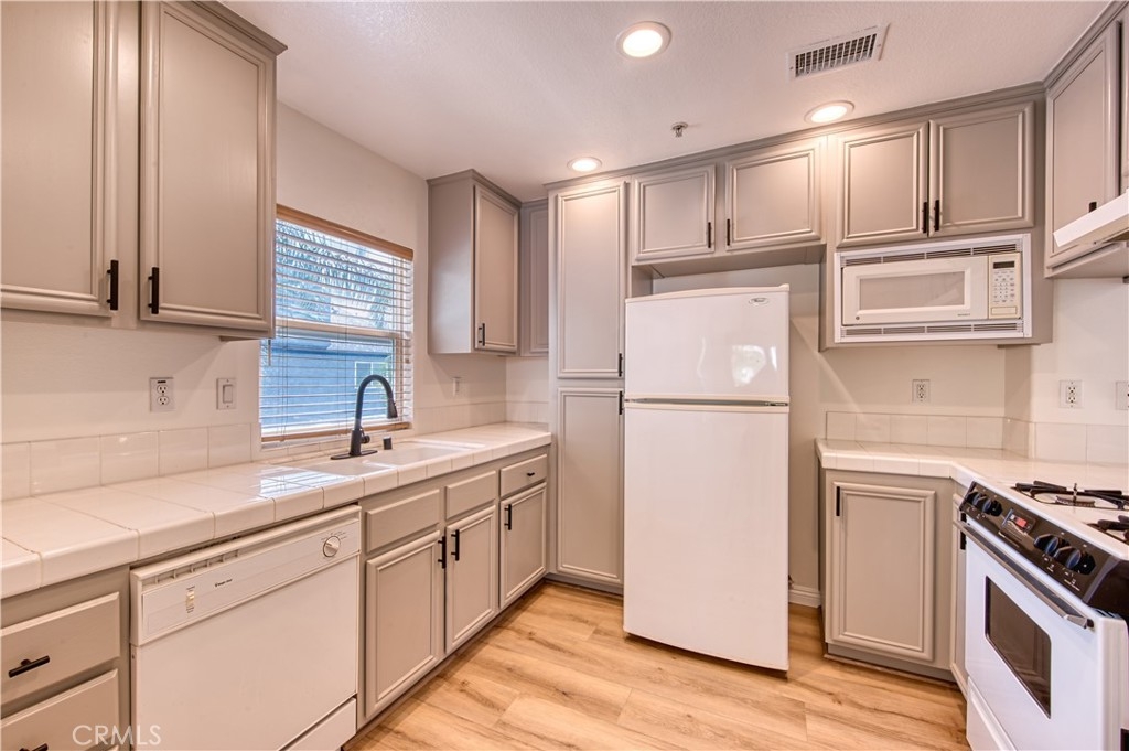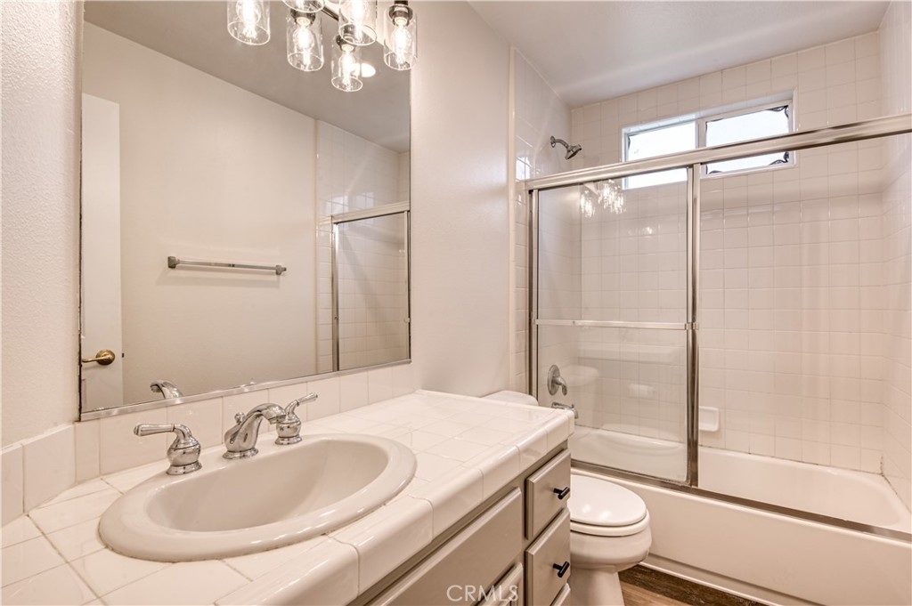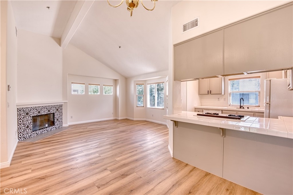 Like light and bright? This is your new home! This remodeled townhome is an end unit located in an exclusive gated enclave of just 8 homes. The smart floorplan includes a bedroom and bathroom on the first floor where you can access the private fenced in patio through a brand-new sliding glass door. On the second floor under high vaulted ceilings, you’ll find an open great room, kitchen with ample cabinets and the primary bedroom and bathroom. Ready for you to move right in, there are brand new luxury vinyl floors (not a spec of carpet in this home), new paint and finishes throughout, plus, as a bonus, the HVAC unit was recently replaced. The laundry hookups are located in the oversized direct access 2 car garage with extra space for storage. This prime location offers easy access to freeways, shopping and the best entertainment that SoCal offers.
