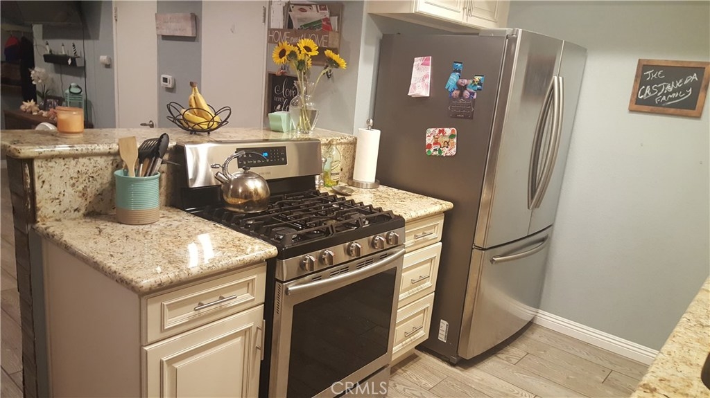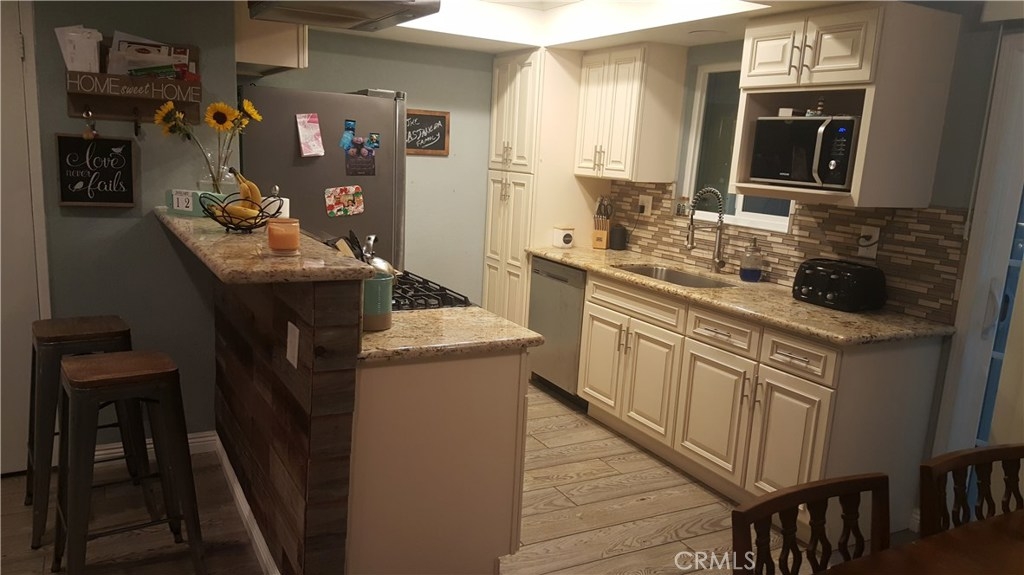 FHA approved!!! Won't last! Completely remodeled 2bedroom and 1.5 bath 2 story condo with Low HOA dues which include trash, gas and water. New dual pane windows through out, livingroom shutters, new laminate flooring, custom kitchen cabinets, granite counters and modern tile back splash, new carpet in bedrooms and stairs, both bathrooms remodeled, house freshly painted popcorn ceiling removed. Owners installed connection for stacked washer and dryer in patio. Secured parking with 2 car parking 1 in assigned carport with storage and 1 assigned open parking in back parking lot. Shows pride in ownership...over $35k in upgrades!