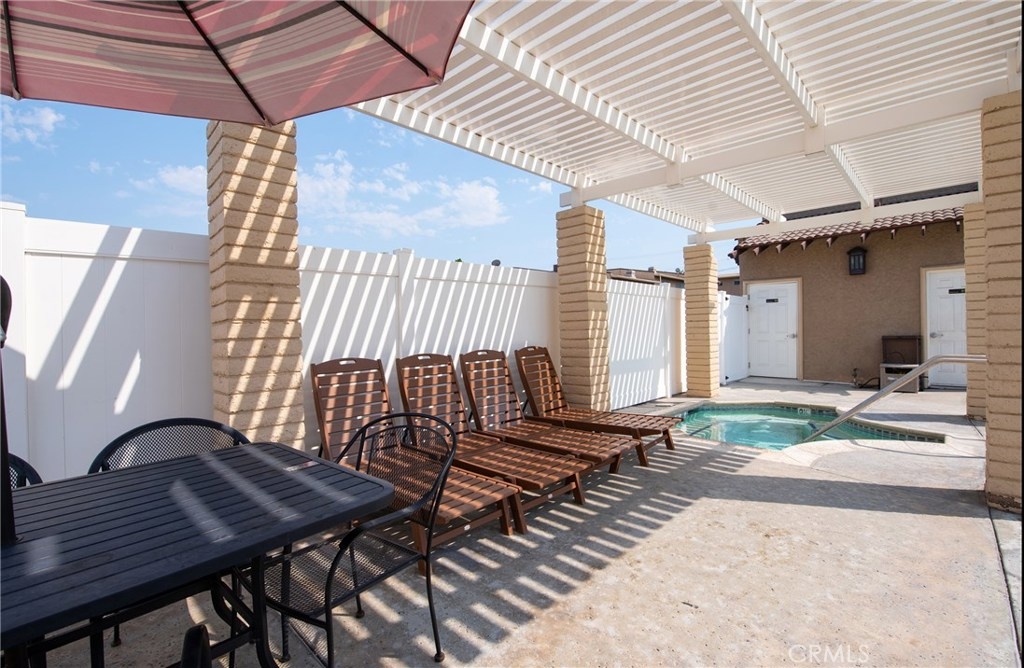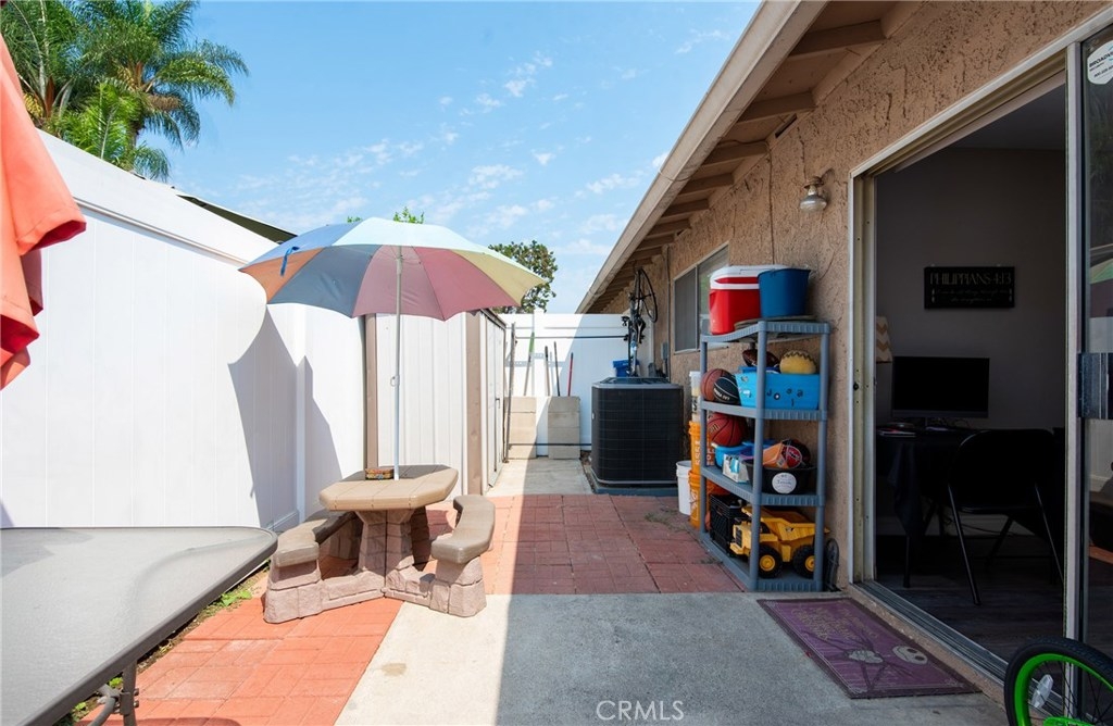 This move-in ready, single story, 2 bedroom 1 bathroom condo is highlighted by central A/C with a Nest thermostat, waterproof Coretek luxury vinyl flooring, updated kitchen, private enclosed patio with a storage shed, built-in alarm system, and community pool. The kitchen has new quartz countertops, stainless steel appliances, tray ceilings with recessed lighting, and white cabinets. The kitchen also has a breakfast counter that shares space with the eating area. The living room is spacious with plenty of natural light and direct access to the enclosed patio area. Each of the bedrooms are spacious with plenty of closet space, windows to let in natural light, and ceiling fans. The full bathroom has a shower with a tub and sink with plenty of counter space. The second bathroom is a half-bath and is located alongside the full bathroom making both bathrooms centrally located next to the two bedrooms. This condo is located in the perfect community with a shared pool and spa, laundry room, and two designated parking spaces. There is also additional storage that is conveniently located next to the covered parking space. It is centrally located with plenty of places to eat and shop.