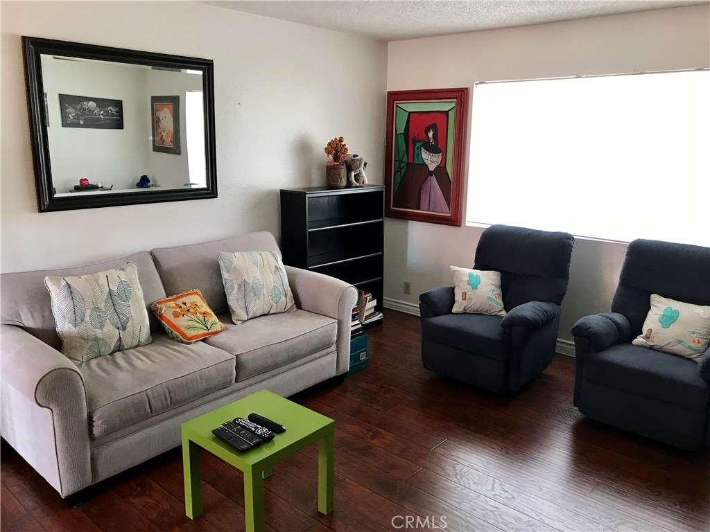 LOCATION, LOCATION, LOCATION!! This 1 bedrm, 1 bth condo, located in Mira Vista Complex is an end unit, very quiet and very private. No one Above, and No one Below. This unit offers open floor plan, beautiful Oak Laminate flooring throughout, large bedroom with extra large closet space. The kitchen is complete with bar seating, plenty of cabinetry and counter space. Cozy enclosed patio is ideal for family B.B.Q or small pet. Swimming Pool, Spa, and Laundry facility are found in this complex. This unit comes with one assigned Parking Space. The location of the complex is close to schools, shopping, dining, parks and transportation. Hurry, Don't miss this One!