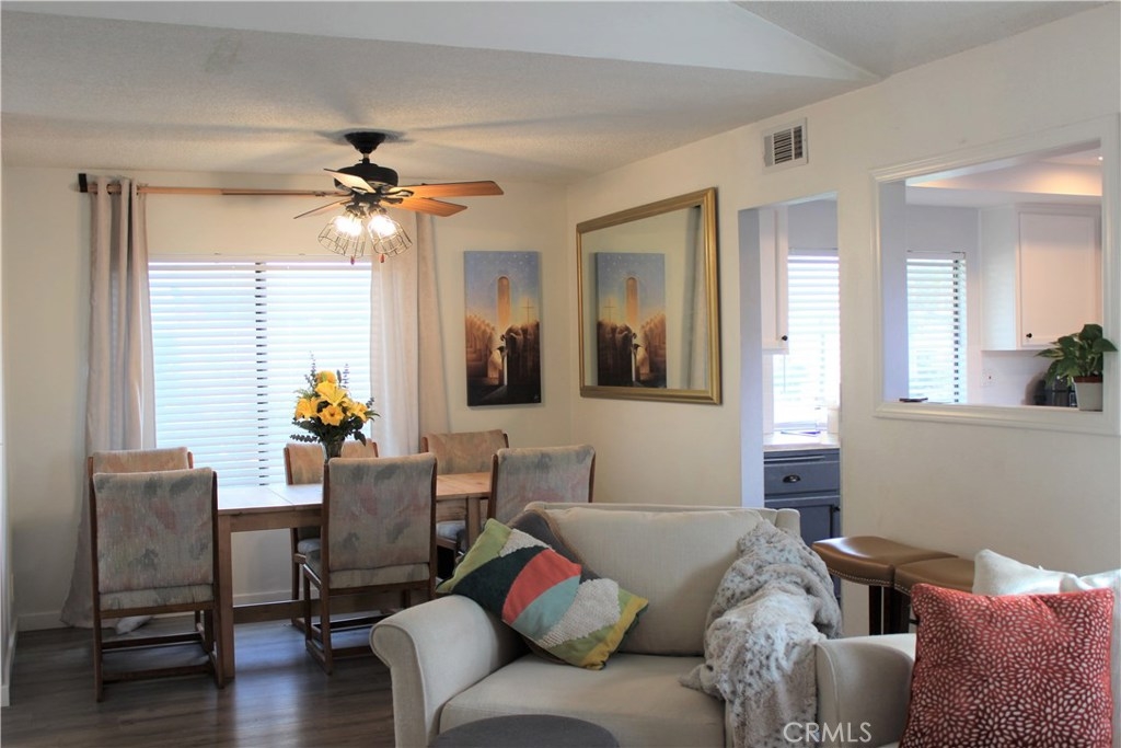 Welcome to this gorgeous single-story condo with a single-family feel. Upon entering, you will love the high ceilings, cozy fireplace and updated laminate wood flooring. The living room is spacious, filled with natural light and open to the dining area for an open concept feel. The beautiful kitchen has been updated with a new sink, subway tile backsplash and new countertops. The cabinets were recently professionally painted and adorned with new hardware. The guest bath has been tastefully updated with new tile flooring, paint, vanity, and lighting. This lovely home features two bedrooms. The guest bedroom is a good size with ample closet space. The master suite is spacious and features vaulted ceilings and double closets. The en-suite master bath features an updated shower and a separate vanity area. You will also enjoy the convenience of your two-car garage. Featuring direct access to your patio and outdoor living space. You can customize this space to create your own personal outdoor oasis and outdoor entertaining area. The community common areas are lush and well maintained with an alluring sparkling pool and spa. This home is well located close to schools, children’s museums, shopping, restaurants, freeway access and so much more. Upon visiting, you will want to call this treasure your own and begin enjoying the benefits of homeownership.