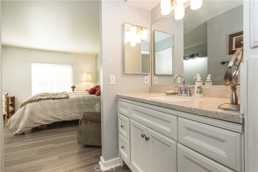 A beautiful end unit on the first level with more privacy and a wraparound porch for spending time outside your home or have a barbeque. This unit is located in one of the most sought-after communities in the center of La Habra. This unit comes with a beautiful light and bright living room connected to a lovely kitchen with vinyl flooring and base molding. The kitchen has beautiful wood cabinets and granite countertops. Matching stainless steel stove, refrigerator, dishwasher and double sink. Large glass windows allow plenty of sunlight in to the beautiful living room and kitchen. Spacious master suit and its own large bathroom and plenty of closet space. The second bedroom on the other side of the house is close to a large bathroom in the hallway. Attached one car Garage and one assigned parking space in the front. There are plenty of additional guest parking is available.. The washer and dryer are inside the attached Garage. This unit is centrally located and its close to shopping centers and restaurants in downtown Brea and Fullerton. The community pool and spa and picnic area are there for you and your family to enjoy.