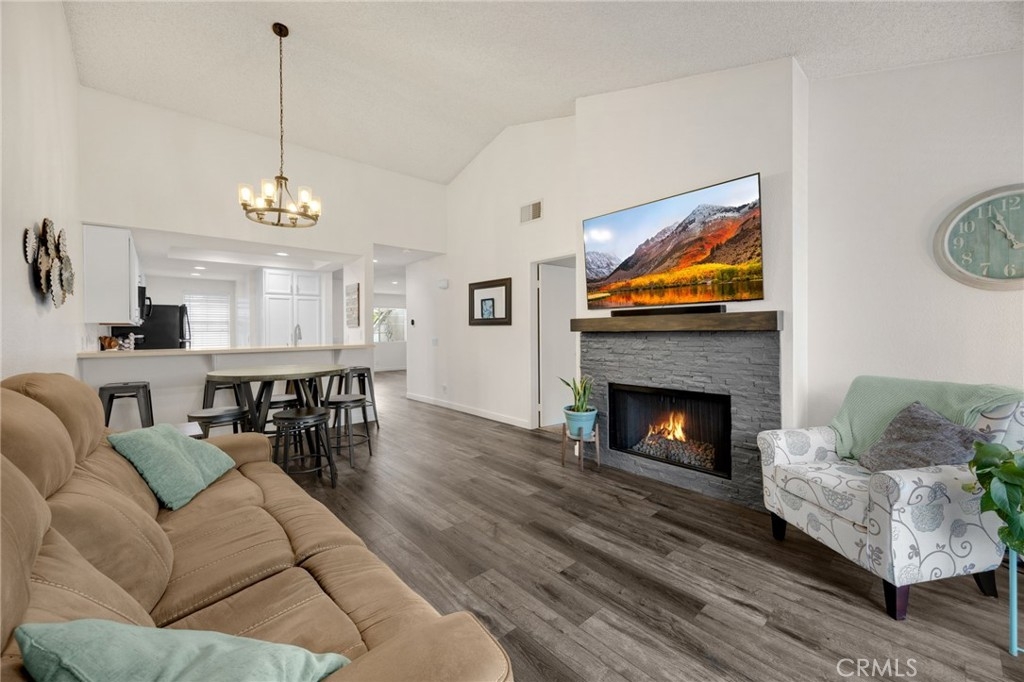 Welcome to this charming Cape Cod-style condo beautifully updated offering the perfect blend of comfort, style and functionality. Designed with a desirable separated 2-bedroom, 2-bath layout with each bedroom having its own remodeled bath, ideal for guests or roommates. Primary bedroom has a walk-in closet. Step into this airy open floor plan featuring vaulted ceilings, luxury vinyl flooring, recessed lighting and a cozy fireplace.The upgraded kitchen offers white cabinetry, a pantry, stainless and black appliances, a new designer faucet and includes a convenient breakfast bar. the floor plan flows seamlessly into the living room and to an open area that could be am office, family room or entertainment area.(originally offered as a 3rd bedroom option if needed). It’s Complete with 2 outdoor balconies to relax, or perhaps BBQ. Enjoy peace of mind with a new water heater, a newer HVAC system with a smart thermostat. Other features are white blinds and/or decorator drapes throughout The complex has been recently refreshed with exterior paint, freshly paved streets, and roofs replaced in last 3-4 years. Community amenities include a sparkling pool and relaxing spa...all in a well-kept, welcoming neighborhood. Close to shopping, movie theaters, restaurants, the soon to open the new Vin Scully Centennial park with 2 dog parks,