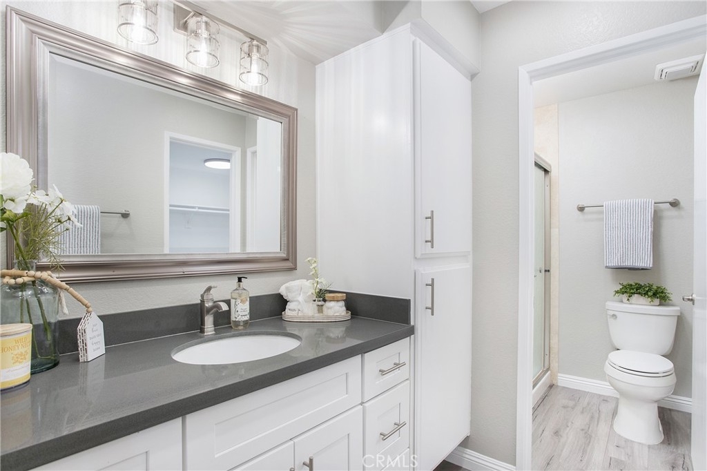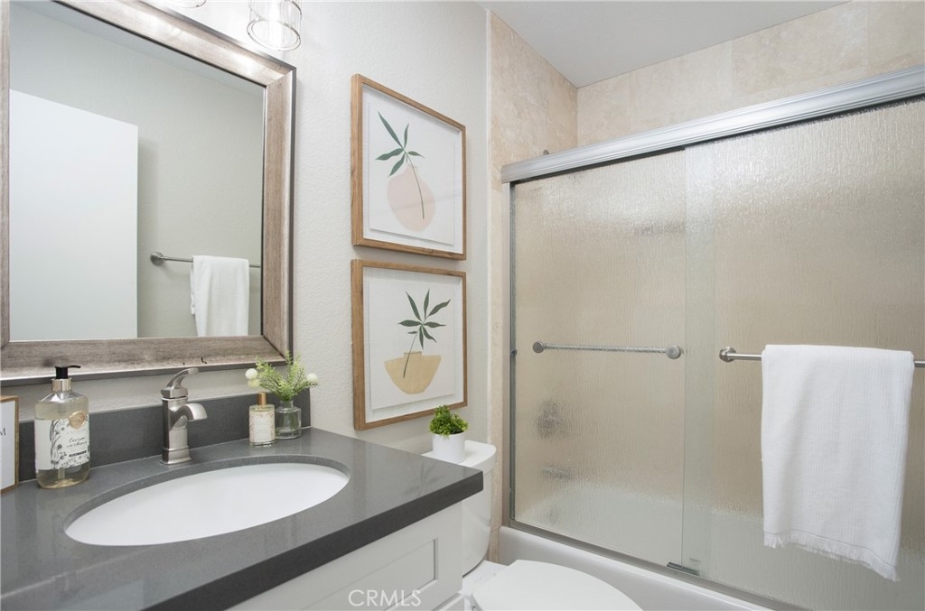 Welcome to 752 Stone Harbor! This property has a great location, just across from the community pool and a corner unit. This beautiful downstairs unit has 2 beds, 2 baths, and approx. 972 sf of living space. The spacious layout mixed with plenty of windows that let in natural light throughout create a very open and bright home. The upgraded kitchen has white shaker cabinets, quartz counter tops, modern wood laminate flooring, upgraded bathrooms with travertine stone showers, all new interior paint and modern fixtures! Additional highlights include a spacious one car garage with laundry and a large quiet private patio perfect for relaxing. This home is move-in ready and won't last long!