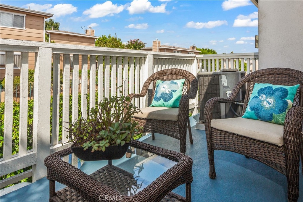 Highly Upgraded 3 bedroom, 2 bath, end unit, Upper Level condo located in the desirable Stone Harbor community of La Habra. A single car garage and one additional assigned space are included! This home is nestled in a quiet and secluded location within the community. The spacious living room features vaulted ceilings, custom designed fireplace, a charming window seat and attached rear private balcony. Your open concept kitchen has been fully renovated to include new Quartz countertops, new stainless steel appliances, new subway tile backsplash, new white shaker cabinets and large breakfast bar open to the living room. Designer details include, new laminate wood flooring, new carpet in the living room and bedrooms, a freshly painted interior and recessed lighting. A Large laundry room located just off the kitchen is a rare feature to find. The oversized primary bedroom showcases vaulted ceilings and a completely remodeled primary bathroom with all new Quartz countertops, new white shaker cabinets, dual sinks, new modern fixtures and a walk-in closet. Two secondary bedrooms share a remodeled full bathroom on the other wing of the house. A second outdoor balcony provides excellent space, light and breezes to the guest rooms. This fantastic community offers a pool and spa. 777 Stone Harbor has everything you are looking for!