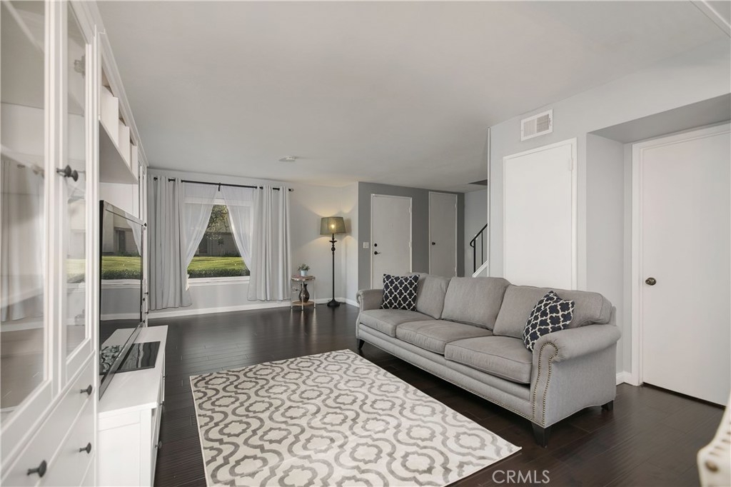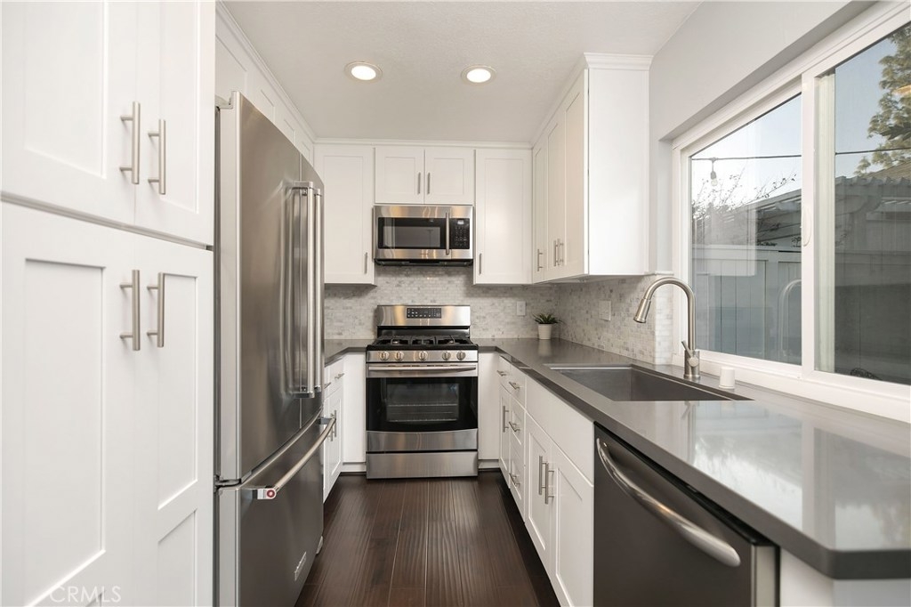 This beautifully updated two story townhome includes a desirable end unit location and is situated in the highly sought after community of Sunny Hills Village. This spacious home boasts 3 bedroom, 2.5 bathrooms and an open plan concept. As you enter the home you are welcomed by natural light and warm laminate wood flooring thought the lower level. The living room flows seamlessly into the dinning area and completely remodeled kitchen. This dreamy chef's kitchen includes grey quartz counter tops, a farmhouse sink, white soft close cupboards and drawers along with stainless steel appliances. From the kitchen and dinning area the sliding glass door leads to your private patio area and spacious two car garage. Located upstairs you will find all bedrooms and a full bath as well. The master retreat features natural light, an ensuite vanity, bathroom and walk in closet with updated flooring. Other features of the home include a brand new garage door, new ceiling fans, fully remodeled powder room, lush green belt in front of the unit and only steps away from the community pool and playground. This home is ideally located near Downtown Brea, Downtown Fullerton along with access to the 57 and 91 freeways for a faster commute.