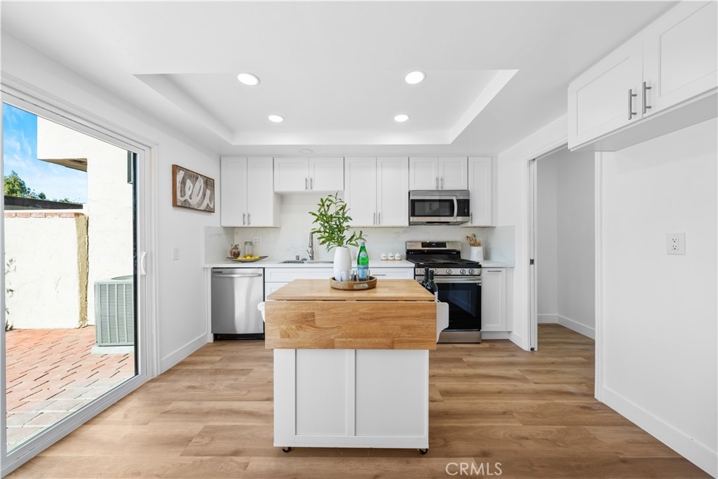 Welcome to 1208 Marble Lane in The Gables, one of La Habra’s most desirable communities. This fully renovated two-story townhouse offers over 1,600 sq. ft. of living space, making it one of the largest floor plans in this beautiful, tree-lined neighborhood. The home has been meticulously upgraded throughout, with new fence, fresh paint, granite countertops in the cabinetry, recessed lighting, and modern vinyl flooring for a cohesive and contemporary feel. Additional updates include a newer garage opener, Lennox HVAC system, copper water pipe throughout the entire house, and more, ensuring a move-in ready experience. Upon entering, you’ll be greeted by a spacious and sunlit living room that offers lovely views of the surrounding greenbelt. The living room seamlessly flows into the family room, which features a cozy brick fireplace and leads to the open kitchen and dining area, perfect for daily living and entertaining. A conveniently located laundry room sits just off the kitchen, providing easy access without needing to go outside to the garage. Upstairs, the grand primary bedroom awaits with vaulted ceilings and a private view overlooking scenic green areas, creating an ideal spot to enjoy your morning coffee. Two additional generously sized bedrooms and a hallway bathroom offer ample space for family and guests alike. Outside, the home provides access to a two-car garage through a spacious private patio, ready to be enjoyed for BBQs and outdoor dining. This community features a range of amenities, including a swimming pool, spa, and nearby access to trails, parks, and golf courses for outdoor activities. Ideally located just 5 to 10 minutes from Brea, with convenient access to Target, Costco, Walmart, Aldi, and Home Depot, and less than a 15-minute local drive to Buena Park's H Mart Plaza, the area is surrounded by diverse dining options. Zoned for the highly-rated Sonora High School (9/10), this home combines comfort, convenience, and a sought-after location in Orange County.