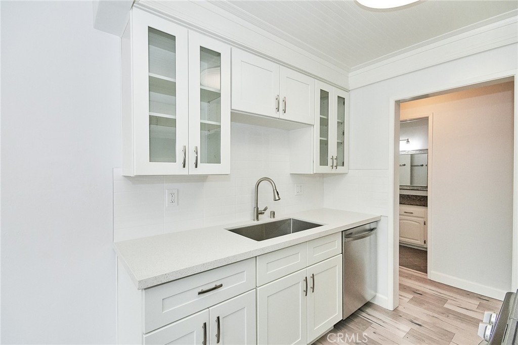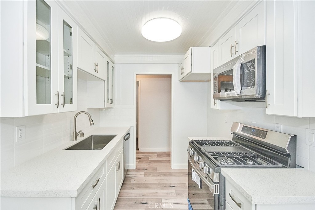 Beautifully remodeled upper unit in Wood Lake Village condo. Laminated wooden floor throughout the entire home. Airy and Bright Remodeled Kitchen with net white cabinet and quarts countertop and new Oven and microwave. Spacious Living room and dining room and relaxing view from the balcony. Master bedroom and Secondary bedroom has Walk-in closet. Third Bedroom was converted from Den. Gated covered parking and very peaceful and rural community walking area. This unit has one carport (#E4) The complex has 3 association Pools and 4 Laundry Facilities. The HOA fee includes Water, Trash and Gas