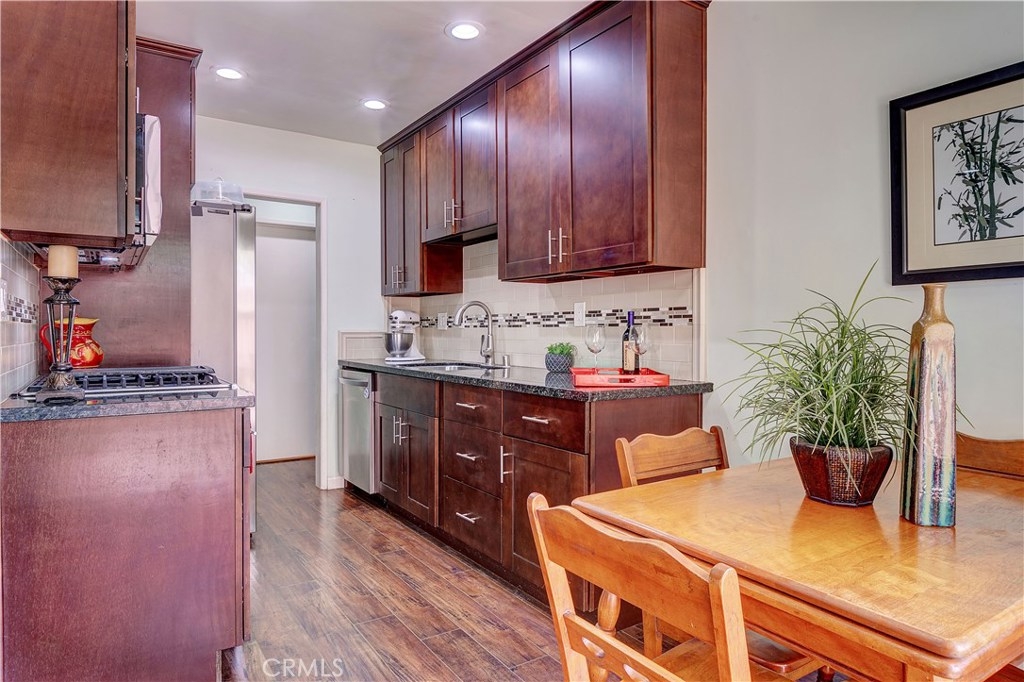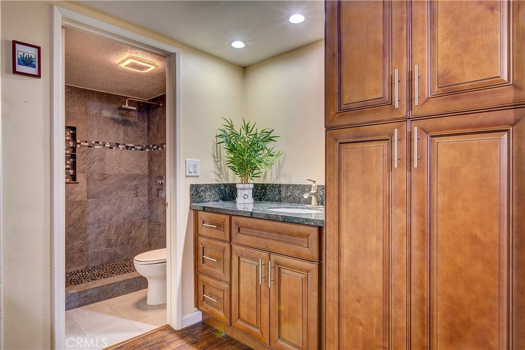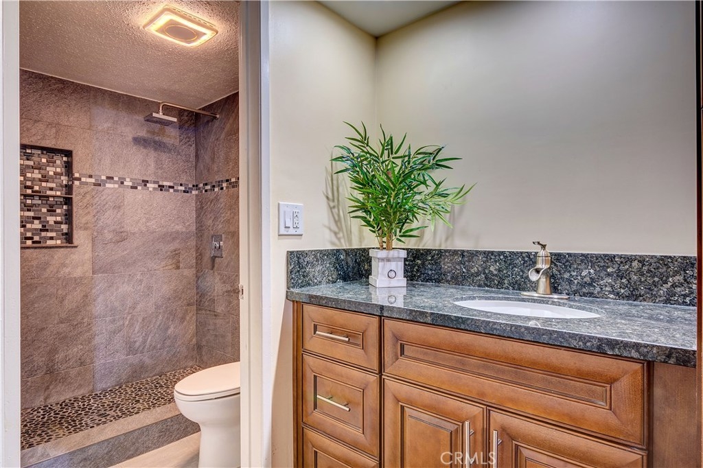 Location! Location! Welcome home to this beautiful lower level, move-in ready condo in the desirable community of Woodlake Village in La Habra! This turnkey condo features 2 bedrooms and 2 full baths. The master bedroom is connected to the master bathroom. Enjoy this large remodeled shower with updated fixtures. This warm and peaceful home has been updated with granite counter tops in the kitchen and bathroom. The Kitchen, dining area and living room have an open floor plan with lots of natural light which leads to the sliding door to the backyard and patio area. The complex is pet friendly with a dog park and offers multiple swimming pools and BBQ areas, great for those nice, hot summer days. Conveniently located to many local restaurants, shopping and entertainment! Don't miss out on this perfect move-in ready, starter home!