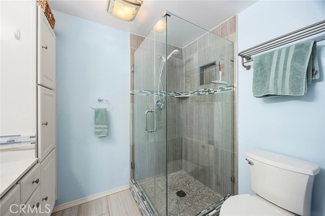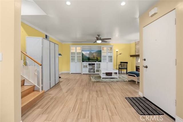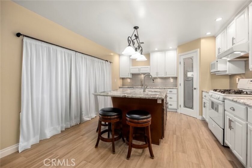 Discover this charming interior-unit retreat tucked inside the peaceful Woodridge community of La Habra. A private, lushly landscaped entrance sets the tone as you step into a bright, open living and dining area. The living room features a cozy fireplace and impressive wall unit being sold with the home. the dining room area has been added to the footprint of the remodeled kitchen and features an oversized sliding glass door that seamlessly extends your living space to the inviting patio—perfect for morning coffee or evening relaxation. The remodeled kitchen impresses with granite countertops, soft-close cabinetry, crisp white appliances, step in pantry and recessed lighting. Down the hallway, you'll find a beautifully maintained full bathroom and a comfortably sized secondary bedroom. The primary suite offers generous closet space and an en-suite bathroom, providing a quiet place to unwind. Washer and dryer hookups are conveniently located on the patio, with an additional community laundry room available for added ease. This desirable interior-unit enjoys a spacious greenbelt along the side and is just steps from its covered carport with private storage. Woodridge residents enjoy access to a gated pool and cabana area, complete with showers, plus a volleyball court and expansive grassy areas ideal for picnics and play. All of this is walking distance to La Habra’s newest shopping, dining, and conveniences. Live, gather, relax, and enjoy everything this wonderful community has to offer.