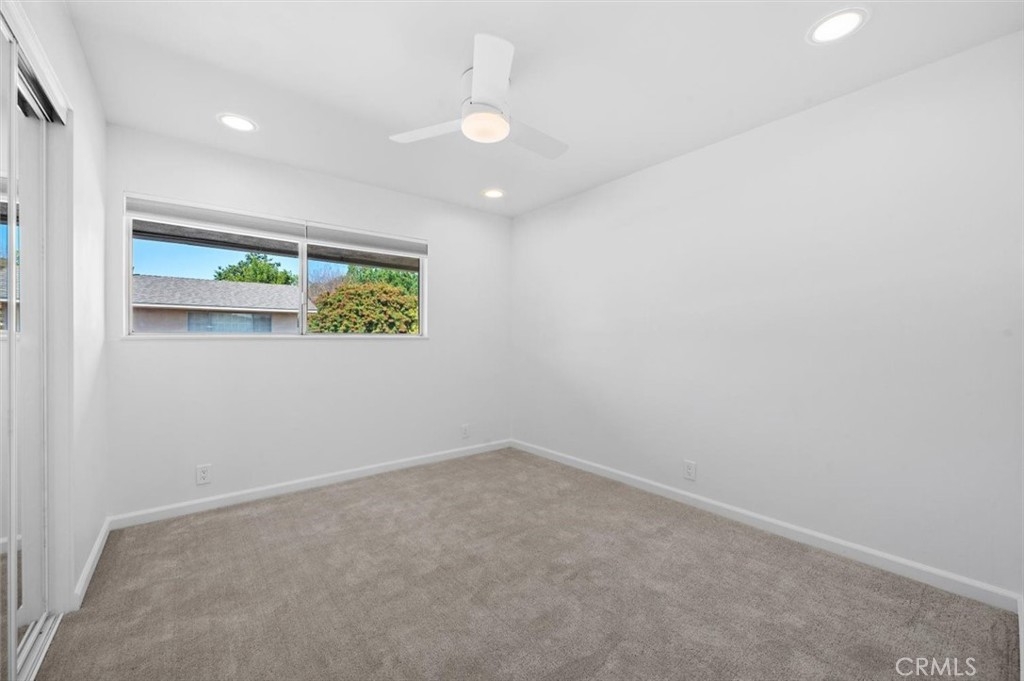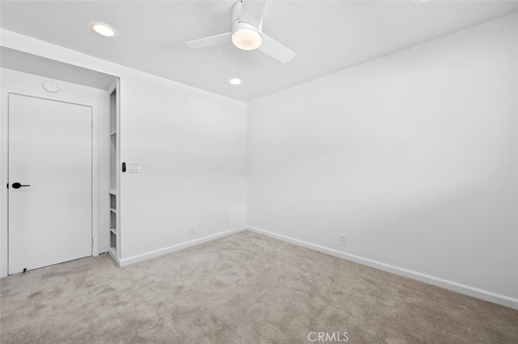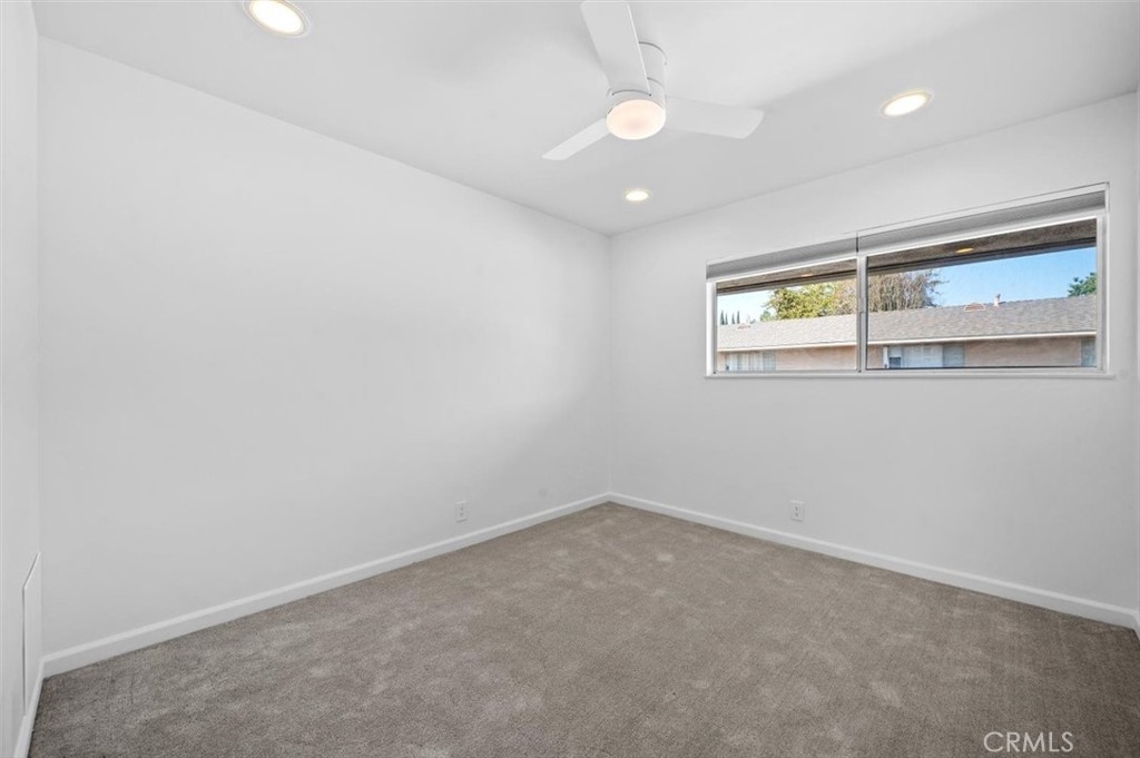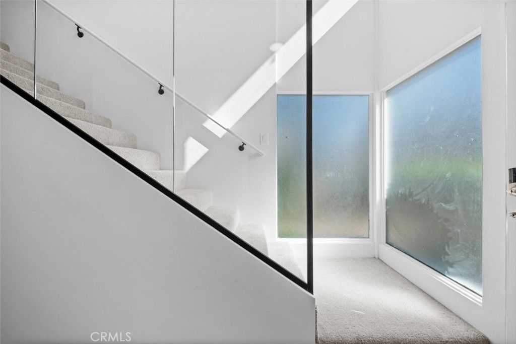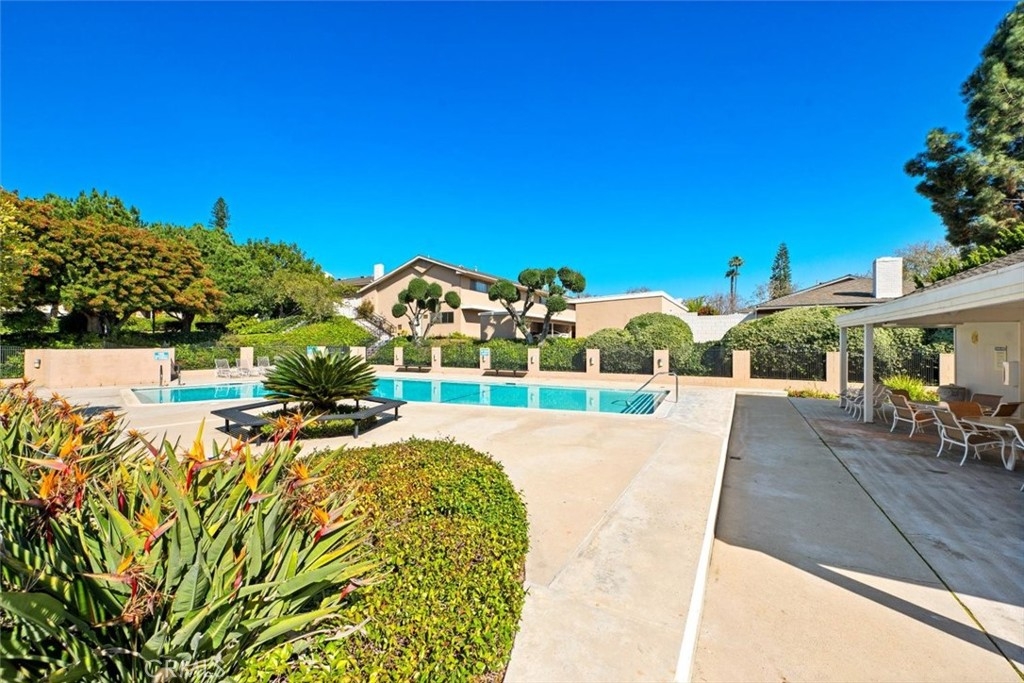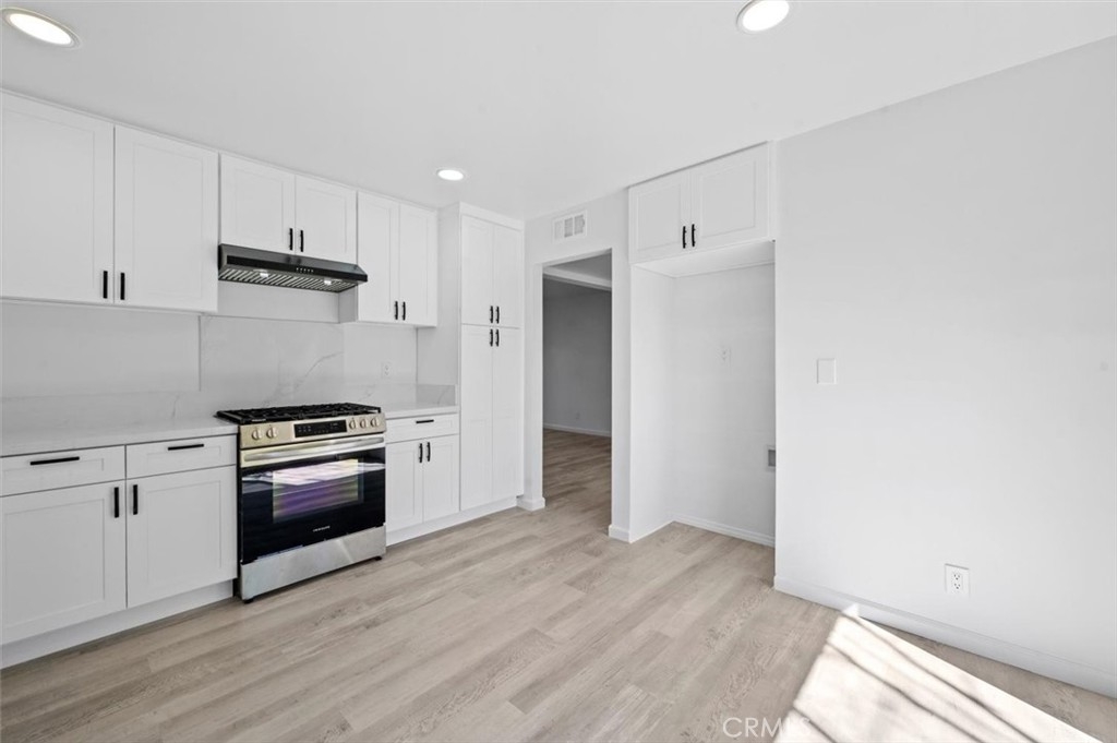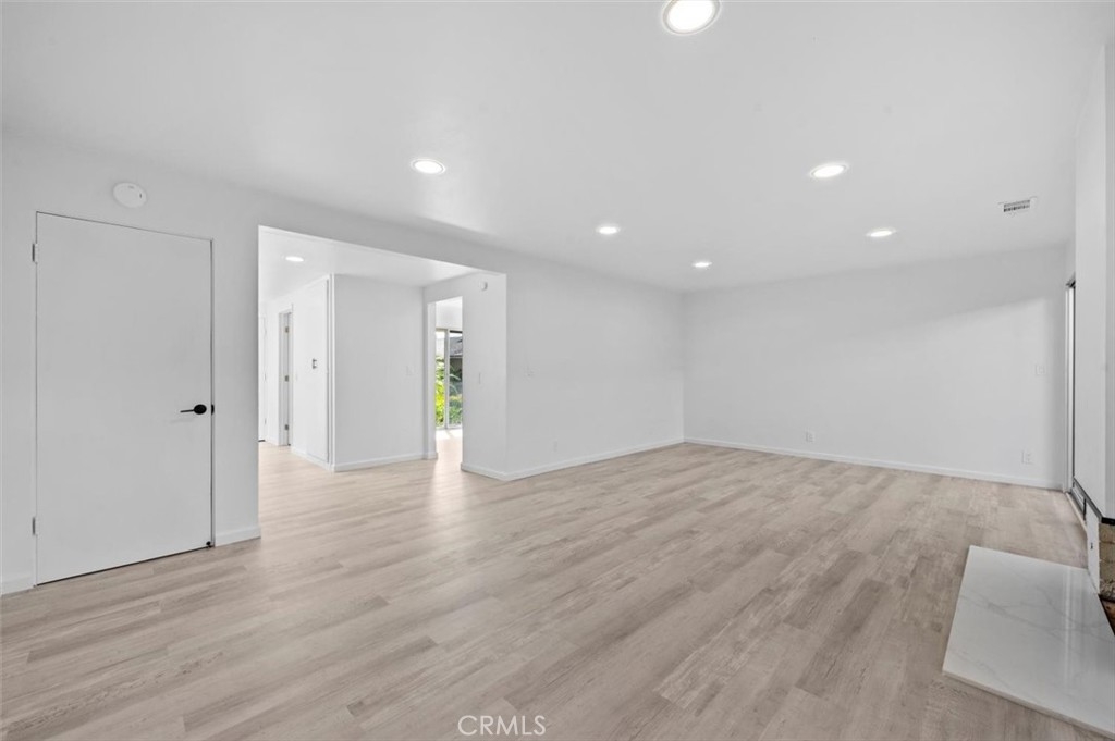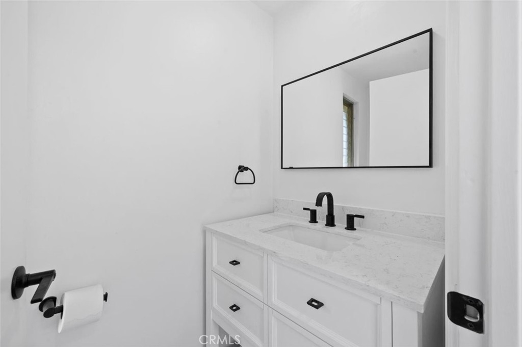 Beautifully remodeled, turnkey mid-century modern end-unit townhouse nestled in the heart of the desired Woodridge Towne House community in La Habra. Step into the home onto brand new New Point Coastal Pine luxury vinyl plank floors which flow throughout the ground floor. The remodeled kitchen features all new quartz countertops, white Shaker-style solid wood cabinets and drawers with matte black handles and pulls, stainless steel Frigidaire gas range and dishwasher, range hood, stainless steel sink with matching matte black faucet, and recessed lights. A large sliding glass door brings in abundant natural light and provides access to the front grounds. The kitchen adjacent great room is spacious and allows for seamless dining and family room space and is highlighted by the centrally located fireplace with brick surround and quartz hearth. The sliding glass patio doors on each side of the fireplace allow for great indoor-outdoor flow from the family room to the private back patio. A half bath and various storage closets adjacent to or below the stairs complete the ground floor. A unique 3/8" tempered glass feature set in a solid bronze channel and pendant lights give the stairway a modern look. Freshly installed gray carpet flows up the stairs, down the hallway with tons of storage space, and into the bedrooms. The primary bedroom suite is large and features two a closets with mirrored closet doors, recessed lights, a ceiling fan, two large windows overlooking the front grounds, and primary bathroom. The primary bathroom features single vanity with quartz countertop, standup shower, and matte black fixtures. The hall bath features a single vanity with quartz countertop and shower over tub with matching matte black fixtures. Bedrooms 2 and 3 feature recessed lights, ceiling fans, mirrored closet doors and windows with a pool view. Located in the back patio is the laundry closet with hookups for a stackable washer and gas dryer. The open air private back patio affords for comfortable outdoor living and is situated between the back of the unit and the private direct door accessible carport with bonus storage. In addition to the dedicated carport space, there is abundant nearby resident and guest parking. The community features a sparkling swimming pool, picnic areas, and community laundry rooms. Conveniently located near restaurants, shops, and more. Move-in ready! What more can you ask for? Do not wait! Hurry before it's gone!