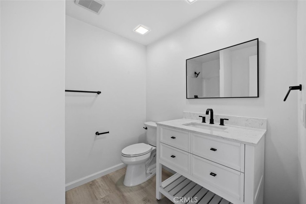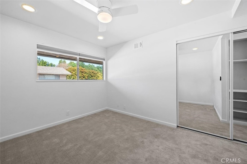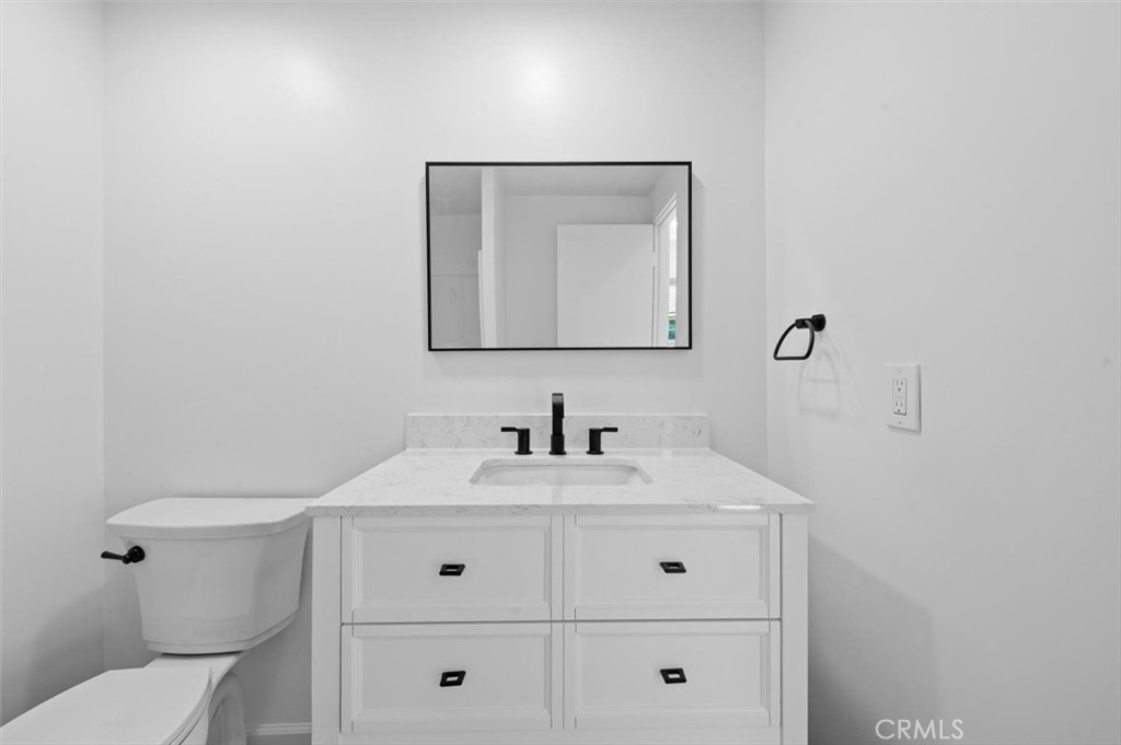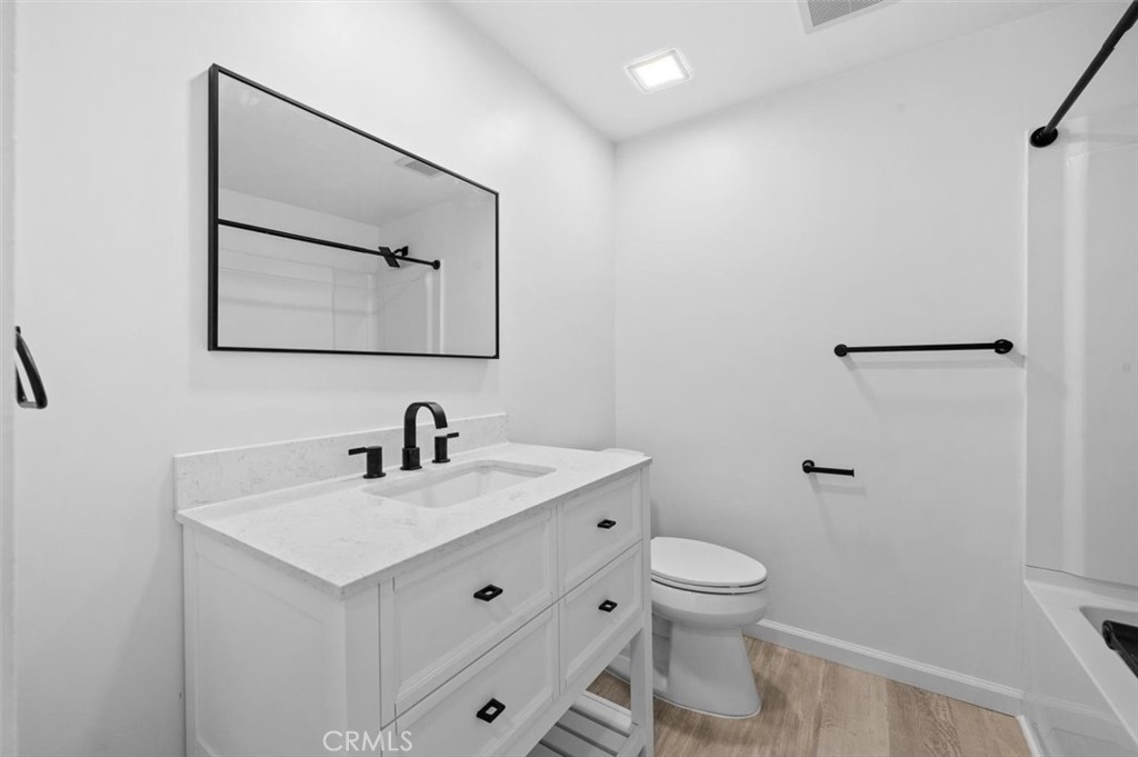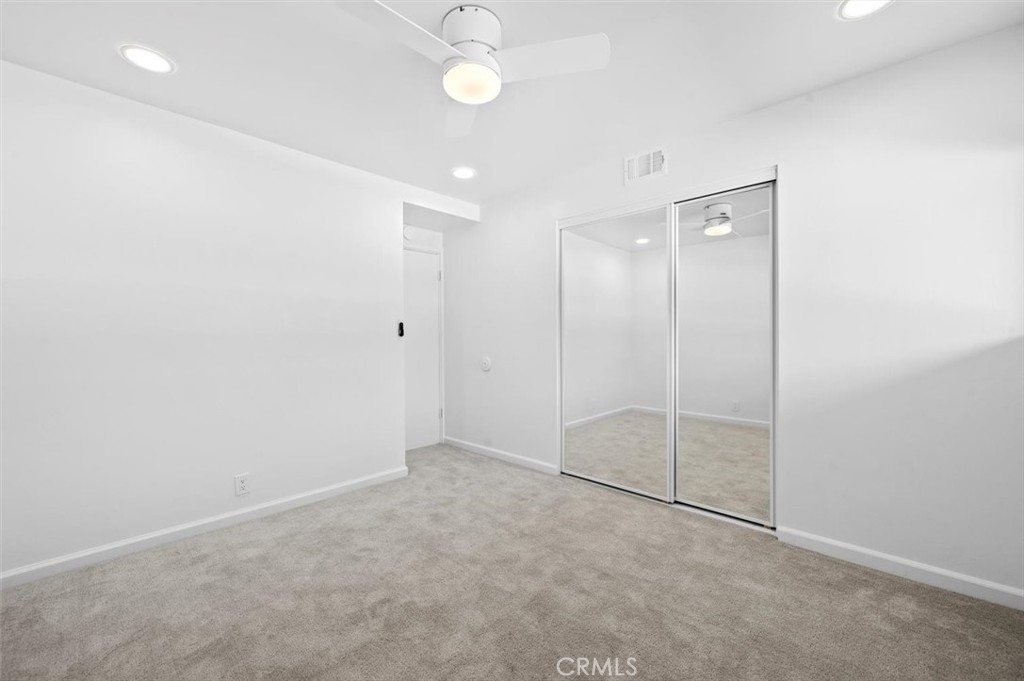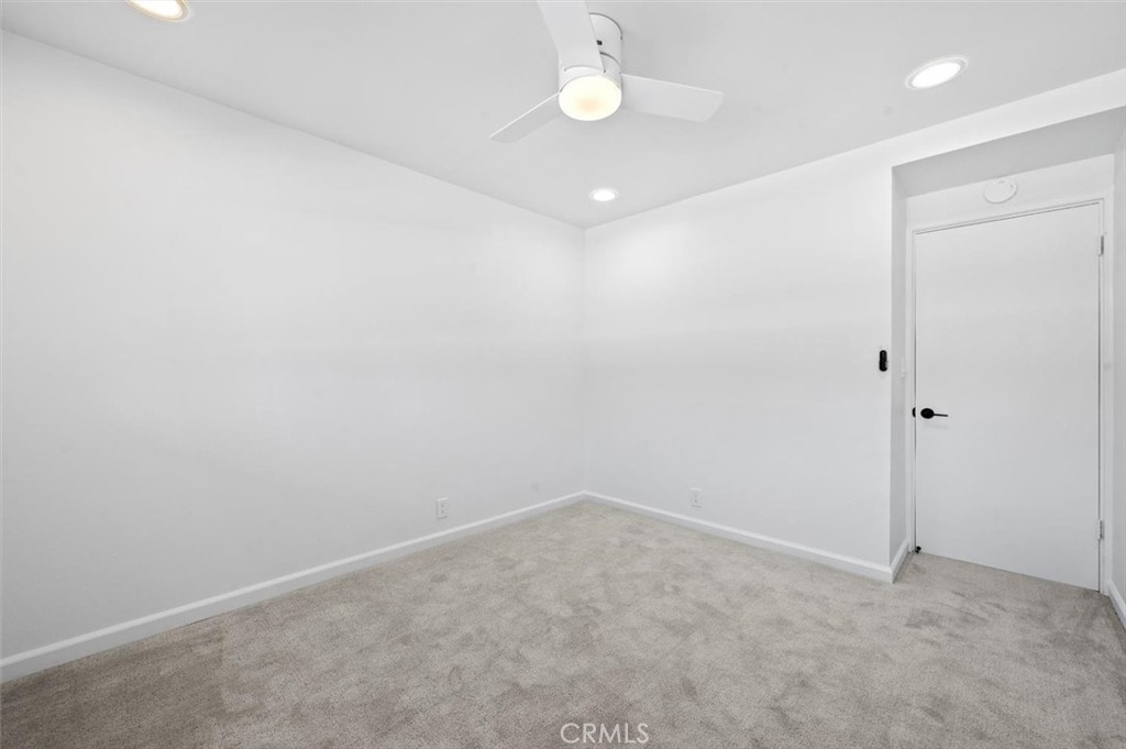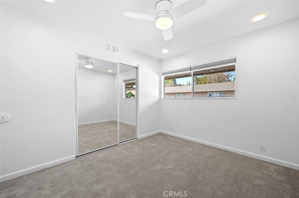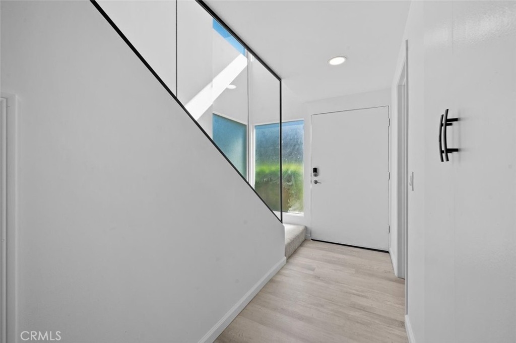 Beautifully remodeled, turnkey mid-century modern end-unit townhouse nestled in the heart of the desired Woodridge Towne House community in La Habra. Step into the home onto brand new New Point Coastal Pine luxury vinyl plank floors which flow throughout the ground floor. The remodeled kitchen features all new quartz countertops, white Shaker-style solid wood cabinets and drawers with matte black handles and pulls, stainless steel Frigidaire gas range and dishwasher, range hood, stainless steel sink with matching matte black faucet, and recessed lights. A large sliding glass door brings in abundant natural light and provides access to the front grounds. The kitchen adjacent great room is spacious and allows for seamless dining and family room space and is highlighted by the centrally located fireplace with brick surround and quartz hearth. The sliding glass patio doors on each side of the fireplace allow for great indoor-outdoor flow from the family room to the private back patio. A half bath and various storage closets adjacent to or below the stairs complete the ground floor. A unique 3/8" tempered glass feature set in a solid bronze channel and pendant lights give the stairway a modern look. Freshly installed gray carpet flows up the stairs, down the hallway with tons of storage space, and into the bedrooms. The primary bedroom suite is large and features two a closets with mirrored closet doors, recessed lights, a ceiling fan, two large windows overlooking the front grounds, and primary bathroom. The primary bathroom features single vanity with quartz countertop, standup shower, and matte black fixtures. The hall bath features a single vanity with quartz countertop and shower over tub with matching matte black fixtures. Bedrooms 2 and 3 feature recessed lights, ceiling fans, mirrored closet doors and windows with a pool view. Located in the back patio is the laundry closet with hookups for a stackable washer and gas dryer. The open air private back patio affords for comfortable outdoor living and is situated between the back of the unit and the private direct door accessible carport with bonus storage. In addition to the dedicated carport space, there is abundant nearby resident and guest parking. The community features a sparkling swimming pool, picnic areas, and community laundry rooms. Conveniently located near restaurants, shops, and more. Move-in ready! What more can you ask for? Do not wait! Hurry before it's gone!