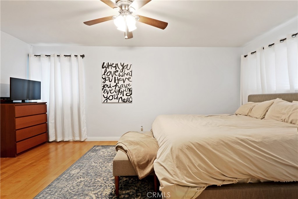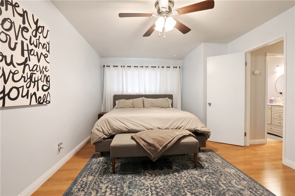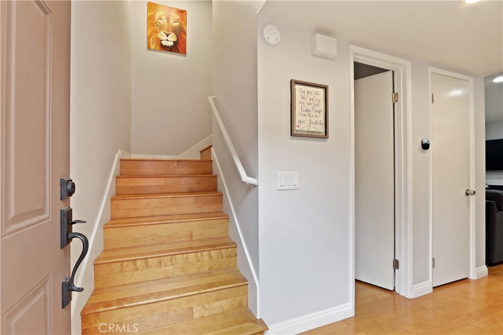 MOVE IN READY! This 2 bedroom 1.5 bathroom condo located in the desirable city of La Habra. Features a remodeled kitchen with quartz counter tops, soft close cabinets and recessed lighting. The ample sized living room features recessed lighting and direct access to your private patio. Upstairs boasts a large master bedroom with custom walk in closet, a second bedroom and full bath. Other features include laundry room, hardwood flooring through out, dual pane windows, crown molding and newer ceiling fans in both bedrooms .