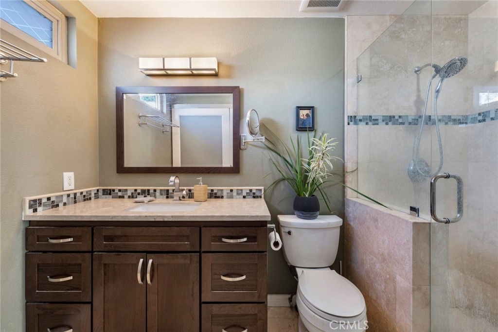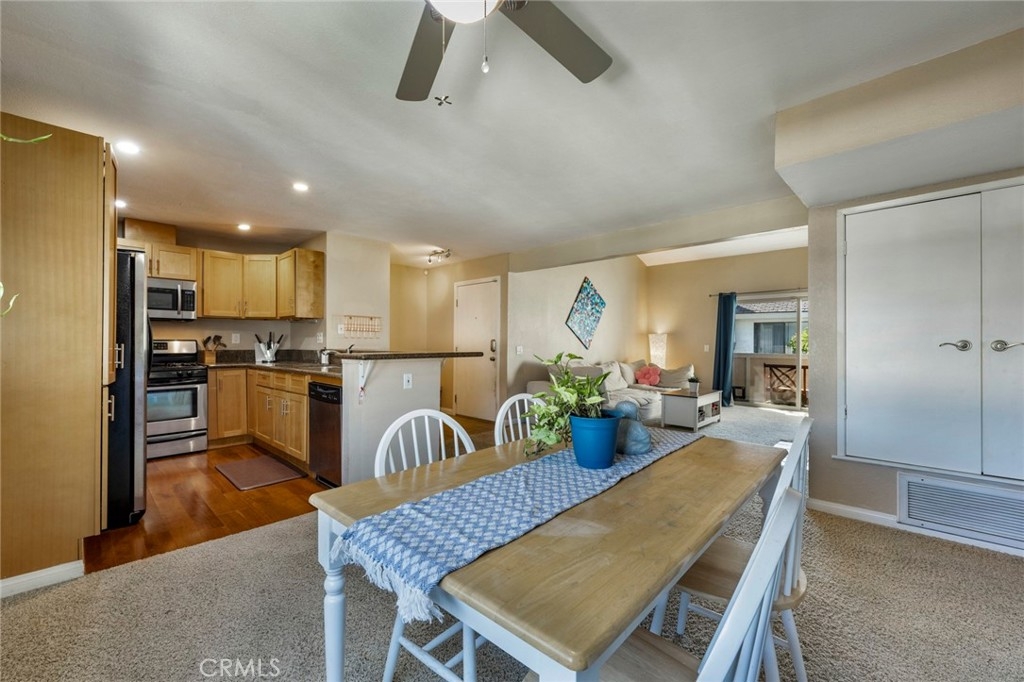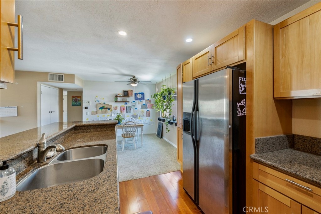 Highly upgraded 3 bedroom, 2 bath unit with a 2 car garage. Kitchen has light colored shaker style cabinets, stainless appliances and granite counter tops. Built in trash and recycling cabinet. Open concept living space features living room with slider to the balcony, and a nice sized dining area. Washer and dryer is conveniently tucked away in its own closet. Primary bedroom is large with a wall of closets and connects to ensuite remodeled bath. Secondary bath features a tub and designer tile. Two car detached garage. AC and Furnace are a few years old. Community features pool, guest parking and greenbelt areas. Includes washer, dryer and refrigerator.