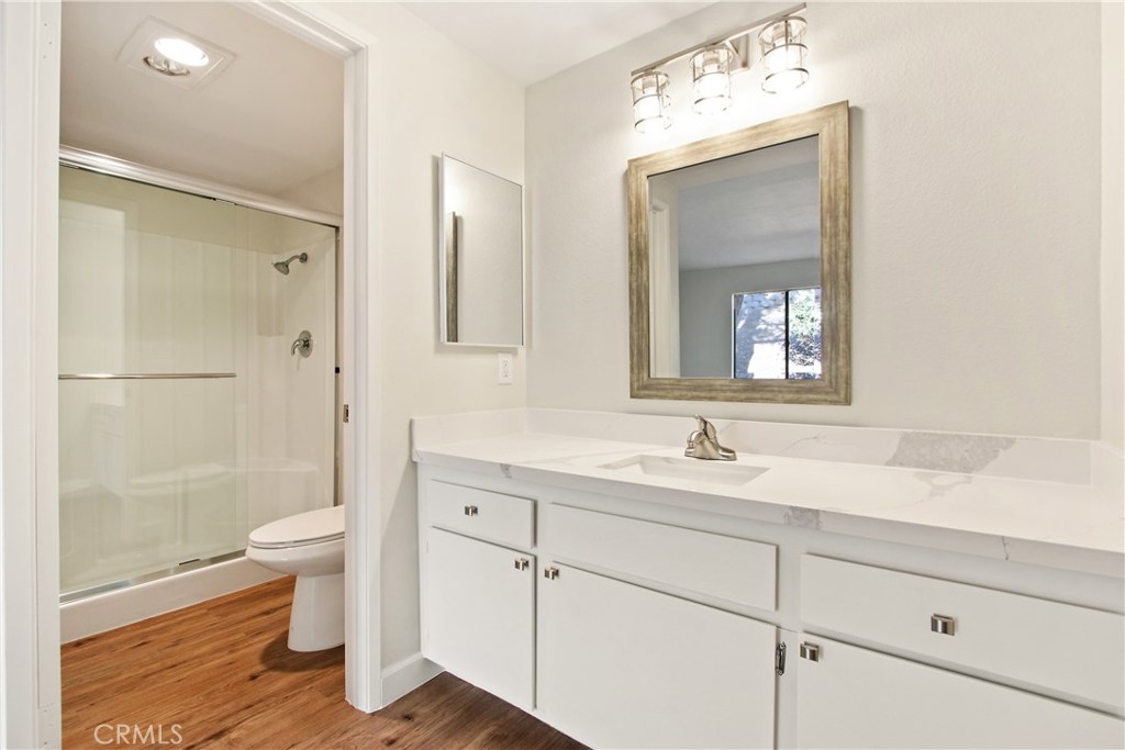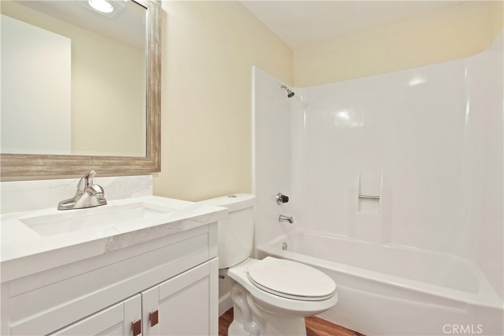 Welcome to this beautifully updated home located within the Gated Fashion Heights Condominium complex. Community amenities include pool and spa, barbecue area, sidewalks, landscaping, and more. This move-in ready end unit offers two spacious bedrooms, two bathrooms, and an enclosed patio. Behind the unit is a well lit open space with hillside views from the bedroom windows. Laminate type wood flooring welcomes you upon entry extending throughout the entire unit. A functional sized kitchen is paired with modern appliances and a separate dining area across. Updates include recessed lighting, quartz counters, new vanities, new fixtures, and a fresh coat of paint throughout. Wonderful location with restaurants, shops, banks, theater & post office nearby. This unit comes with a 2 car detached garage.