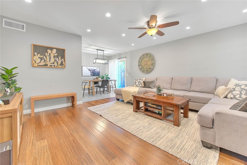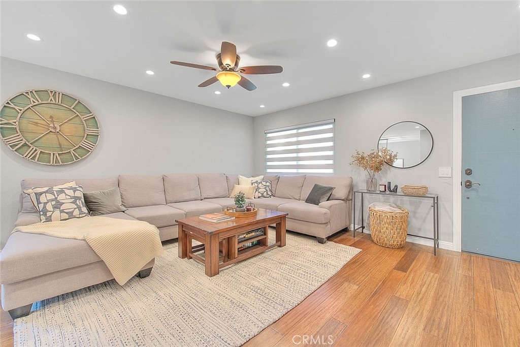 Welcome to 1074 Las Lomas Drive #A! This unique and lovely single level townhome feels like a Single Family Residence. This is an end unit property with direct entry, it is a very rare and very desirable A unit with only one shared wall. This floor plan has a comfortable layout featuring 3 bedrooms and 2 bathrooms. The spacious primary bedroom includes a large walk-in closet and ensuite bathroom giving you a private retreat to look forward to come home to. This gorgeous turnkey unit features recessed lighting, smooth ceilings, bamboo flooring, newer windows and sliding glass doors. The designer kitchen has upgrades like quartz countertops, marble backsplash, and Italian ceramic tile flooring. Cabinets are soft closing and have hidden drawers and a built in pantry for easy organization. Enjoy your own private outdoor space in the enclosed patio area that is roomy enough for a large outdoor table, chairs and BBQ. Another huge bonus is the location! This unit is steps away from the community pool and clubhouse and comes with a 1 car garage and 1 separate assigned parking space. Across the street from the community is Vista Grande Park which is currently undergoing a new development project which will feature: Construct a new amphitheater, dog park, three open play fields, futsal/basketball court, volleyball court, gazebo, universally accessible playground, trail with exercise stations, drought tolerant demonstration garden, picnic areas, art wall, new parking areas and a restroom, with new lighting and landscaping throughout the park. Conveniently located and walking distance to an abundance of shopping, dining, golfing and entertainment. Mins to the La Habra Marketplace, Westridge Plaza Mall, Westridge Golf Club, Robert Ward Nature Preserve. This one checks all the boxes!