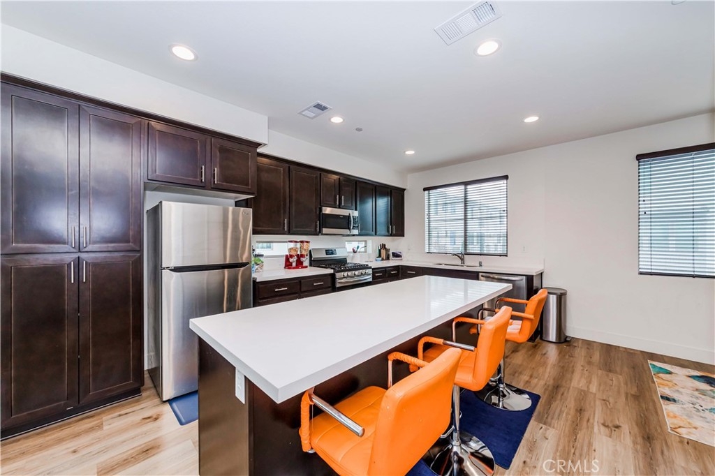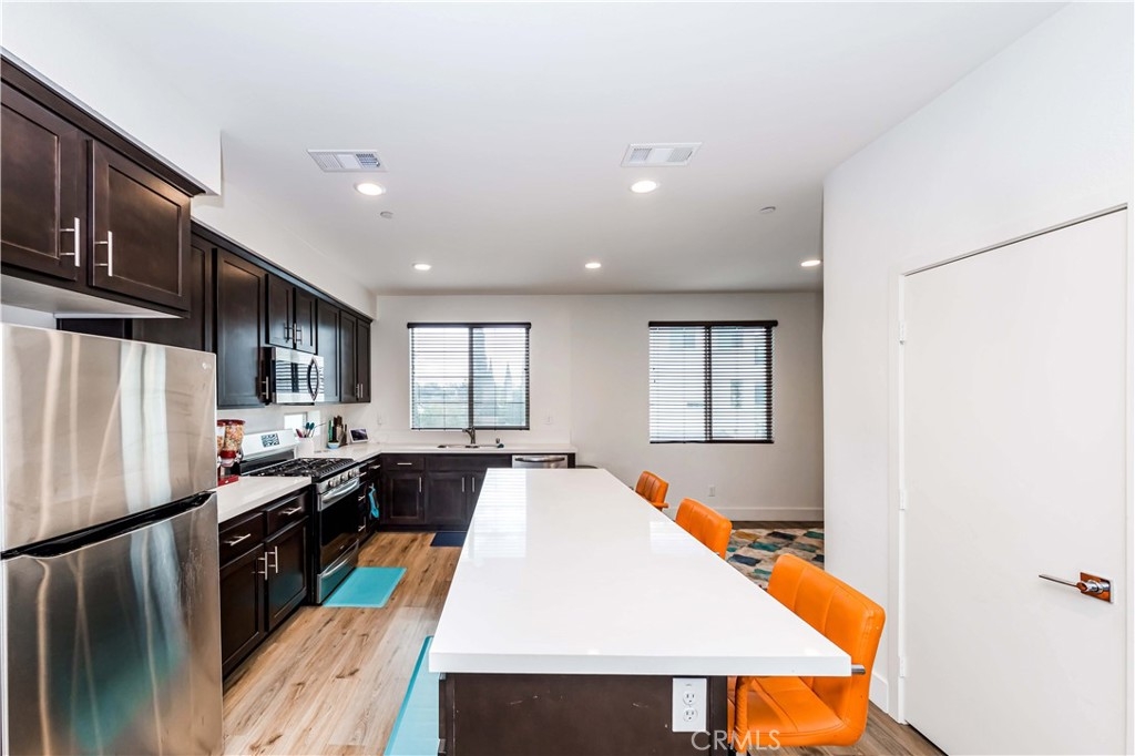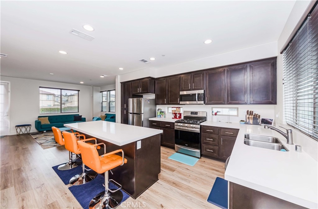Welcome to 113 E Knox Drive in the prestigious VOLARA community of La Habra, where exceptional living meets convenience and modern luxury! This beautifully remodeled 3-bedroom, 2.5-bath home offers approximately 1,502 square feet of stylish, functional living space, designed with both comfort and elegance in mind. Upon entry, you'll be greeted by a versatile bonus room, perfect for a home office, sitting area, or even a playroom. This space offers direct access to the 2-car garage, which also features additional storage space to keep everything organized. Ascend to the second level, where an expansive and bright great room awaits. Natural light pours in through abundant windows, highlighting the recessed lighting and creating an inviting atmosphere. The adjacent dining area flows seamlessly into the beautifully remodeled kitchen, complete with stainless steel appliances, custom cabinetry, and modern countertops. Ample storage space ensures that both cooking and entertaining are a breeze. A convenient half bath for guests is also located on this floor. The top floor is dedicated to rest and relaxation. The serene primary suite offers a spacious walk-in closet and a luxurious, remodeled ensuite bath with dual sinks and a large walk-in shower. Two additional bedrooms on this level are generously sized and provide ample closet space. The beautifully remodeled hallway bath and convenient laundry space complete this floor. Additional features of the home include a low monthly HOA & solar lease, contributing to energy efficiency and cost savings. The community also offers great amenities such as abundant guest parking, lush greenbelts, and an outdoor BBQ and sitting area, ideal for enjoying the California weather. With a central location near top-rated schools, shopping, dining, parks, and entertainment options, and quick access to the 57, 60, 5, and 91 freeways, this home is not only a retreat but also a prime opportunity for anyone looking to live in the coveted VOLARA community. Don’t miss the chance to make this exceptional property your own. Come see 113 E Knox Drive today!