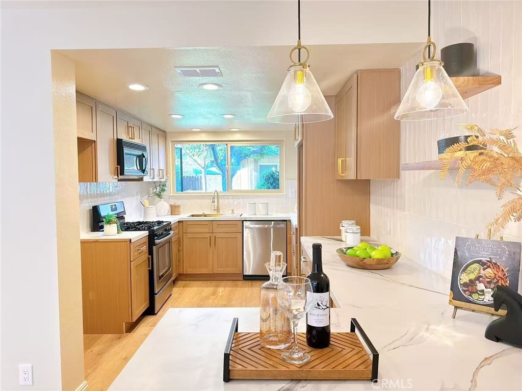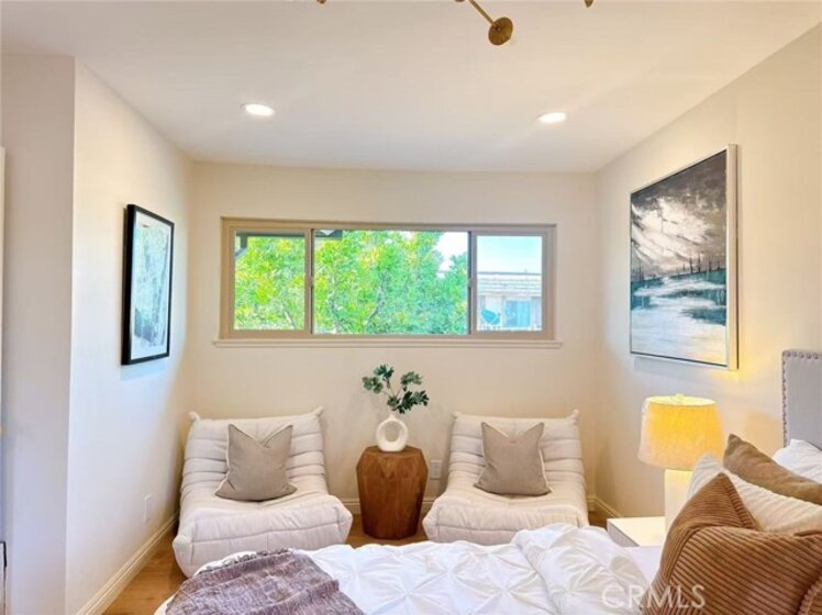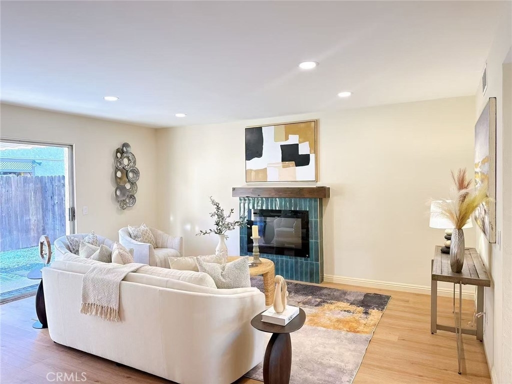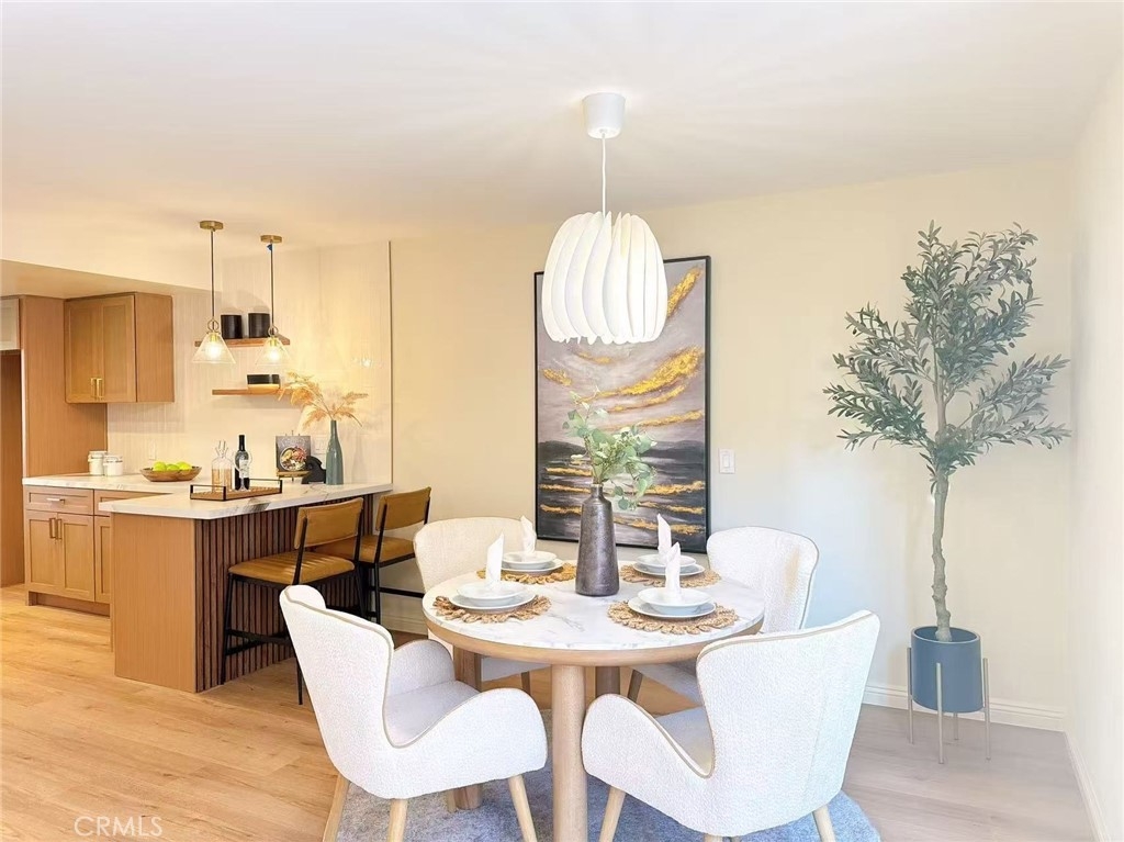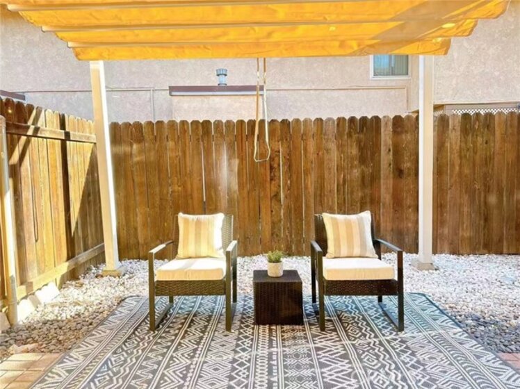 This beautifully renovated 2-bedroom, 2-bathroom condo offers a bright, open-concept living and kitchen area—ideal for modern living and effortless entertaining. The gourmet kitchen features high-end custom cabinetry, elegant marble countertops, and a convenient breakfast bar. Upstairs, the bathroom is thoughtfully upgraded with a smart toilet and anti-fog LED mirror, adding both comfort and sophistication. Stylish wood flooring extends throughout the home, enhancing its contemporary appeal. Step outside to your private backyard with a covered patio, perfect for relaxing or outdoor dining. Situated in a quiet, well-maintained community offering resort-style amenities, including a pool and spa. Conveniently located near parks, shopping centers, banks, and a variety of restaurants. A perfect place to call home—this exceptional property won’t last long!