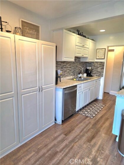 Welcome to this a beautiful move in ready upper level upgraded 2bedroom 1 bath condo with a converted Den being used as 3rd bedroom adding an extra space in the city of La Habra at Wood Lake Village Community. This condo has a remodeled kitchen with white cabinets, beautiful counter tops, new laminate flooring thru out the unit, fresh paint, remodeled restroom, dual pane windows walk in closets in bedrooms. The community offers it's desirable amenities including community pools, on site laundry, 1 carport parking , 1 additional parking space. HOA fees include water, trash, and gas. Close to shopping centers, dinning, and the newest Vin Scully Centennial Park featuring the city's first dog park and accessible playground, pickle ball, basketball, volleyball courts and walking paths with exercise equipments. A great opportunity for first time buyer looking for a move in ready property.