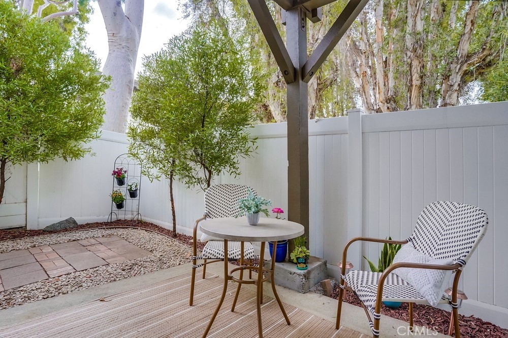 Nicely remodeled single-level condo in a great area of La Habra. Walk into the expansive living room and you will be greeted with a neutral paint color that makes this home feel larger than its actual square footage. The spacious kitchen offers granite countertops with stainless steel appliances which leaves plenty of room for a dinette set overlooking your private outdoor patio. The one-bedroom is large and comfortable with a huge walk-in closet. The bathroom has been remodeled with newer tile work and relaxing stone pebbles in the shower. Throughout the home, you will notice that it has been tastefully remodeled with newer high-quality laminate wood flooring, tile floor, crown molding, baseboards, recessed lighting, and a newer HVAC system. The enclosed patio is private and tranquil where you can enjoy your morning coffee or evening drink. Woodlake Village offers swimming pools, laundry areas, and walkways. The HOA covers lush landscaping, water, and trash. This home is close to public transportation, shopping centers, and more. All financing is accepted.