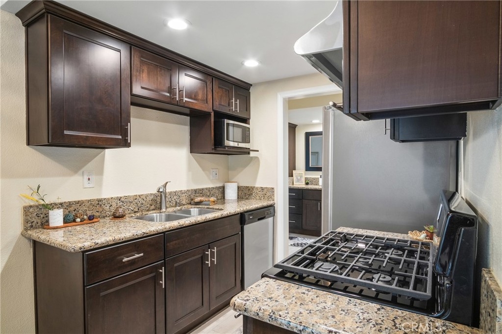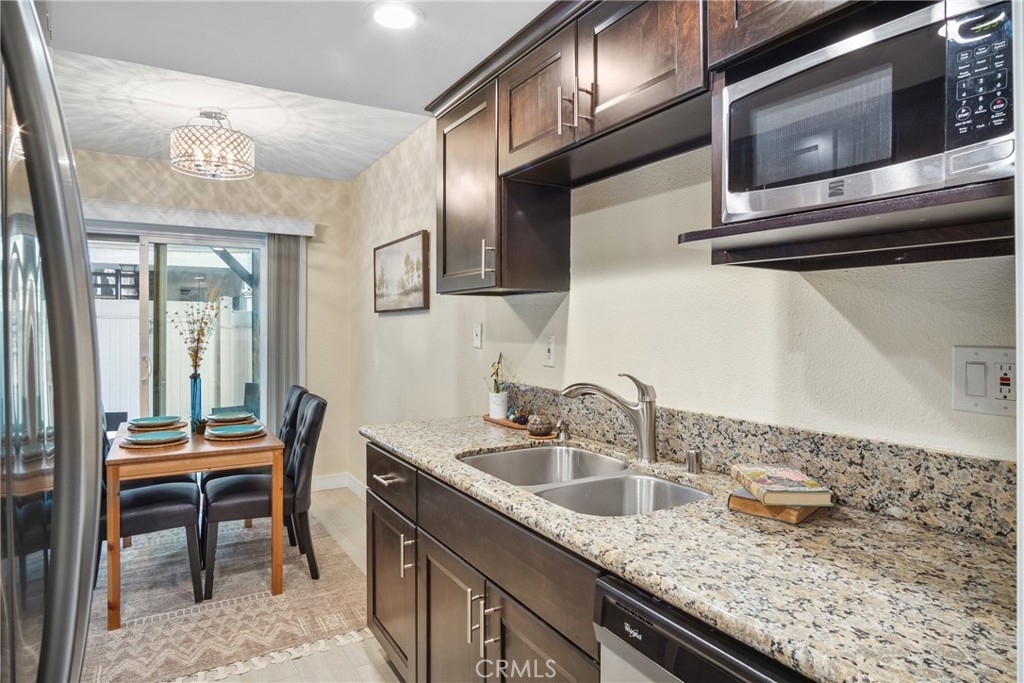 WOW! A COMPLETELY RENOVATED FIRST FLOOR CONDO AWAITS ITS NEW LUCKY OWNER! This charming, spacious home is light, bright and ready for you to move in! Enjoy the new trendy laminate flooring throughout, new paint and newer upgraded windows. The kitchen boasts new cabinets, newer stove, dishwasher, microwave and granite countertops. The dining area is conveniently set between the kitchen and huge enclosed patio with new fencing...perfect for entertaining! The pool is nearby, and there is a community barbeque area and laundry room. Canned lights are installed throughout the living area & kitchen, beautiful chandeliers are in the dining area and massive walk-in closet. The bathroom is simply gorgeous! The shower is stacked stone and herringbone tile with glass barn-style glass doors. Just outside the bathroom has tons of storage, with adjustable shelves. All of the windows have plantation shutters for style and privacy! This has all the qualities of a new home! Be the "first" to live here! Parking spot included, low HOA dues and FHA approved! Gas, water, trash and upkeep covered by HOA, as well. Welcome Home!