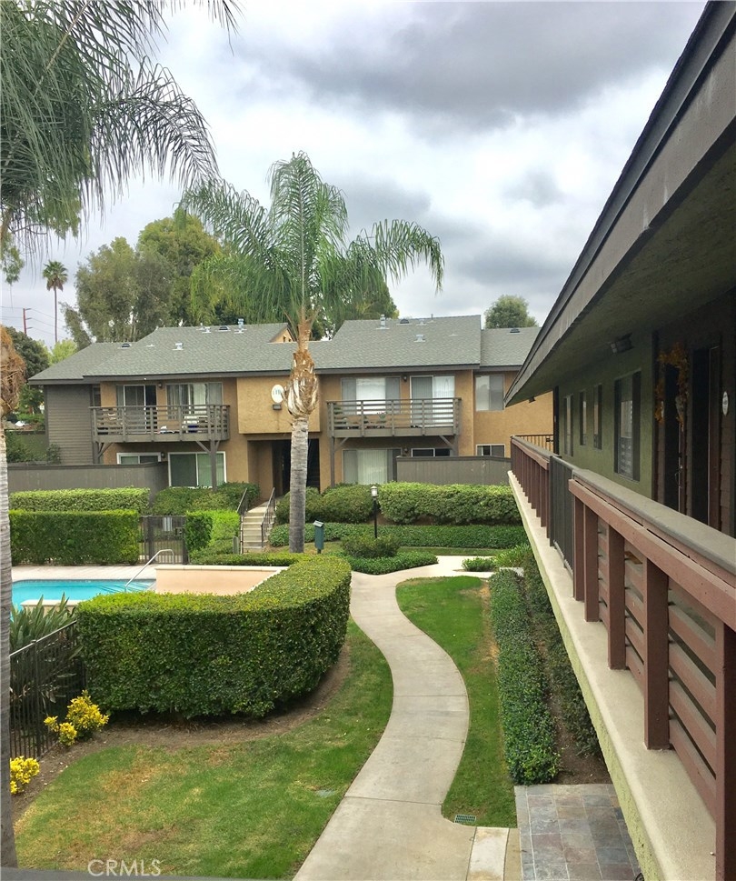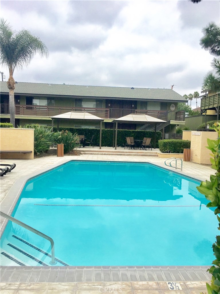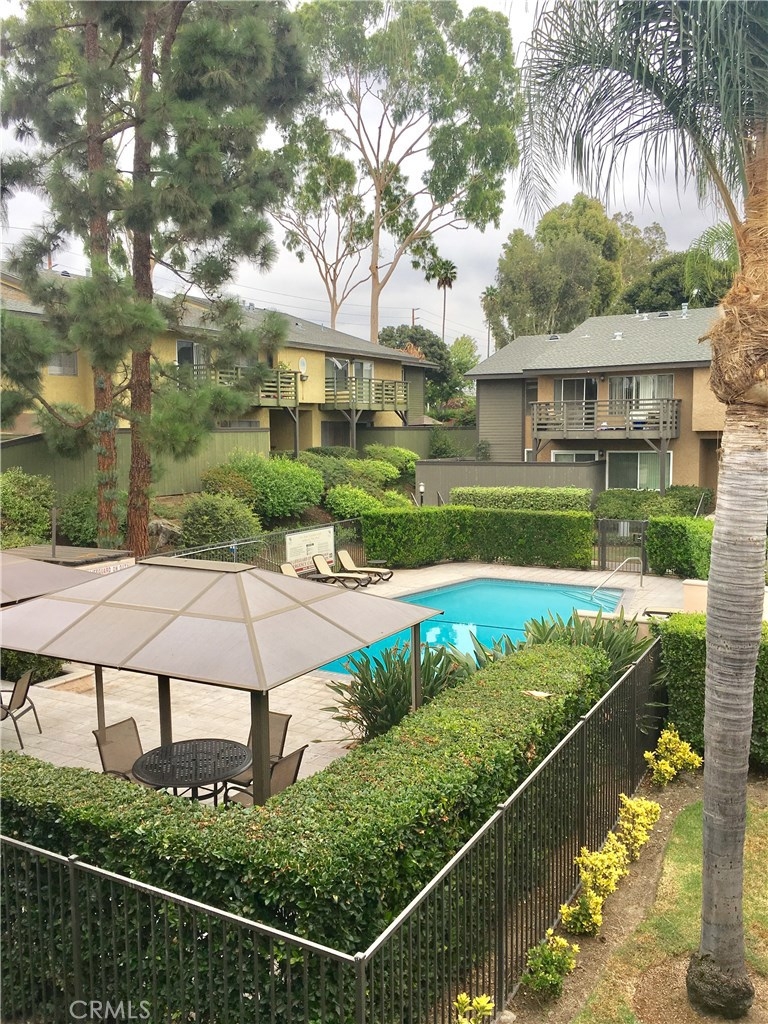 2 bedroom condo located in highly desirable Creekside Community, this contemporary home is in pristine condition, floor plan offers 2 bedrooms, master bedroom with a walk-in closet, an updated bathroom with soaking tub, central air and heat, recessed lighting, updated kitchen with granite countertops, abundance of cabinet and storage space, 1 carport parking space ( assigned ) and one uncovered space ( not assigned ). Quiet and private location tucked away in the back of the complex. Community has multiple swimming pools and barbecue areas, beautifully landscaped grounds, HOA pays for water, gas, trash, and common area maintenance.