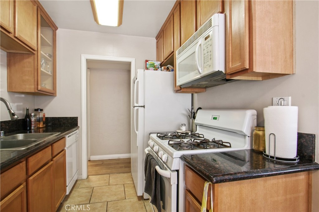 Location, Location! This 2 bedroom 1 bath ground Floor Condo is situated in a highly desirable community that has it all! The Open Living Room has lots of Natural Light. The Kitchen offers tile floors, with Stainless Steel and granite countertops, Stackable Washer and Dryer, Off the Kitchen is a Dinning Area with a Ceiling Fan and Sliding doors which lead to a Private Large Patio, A jack and Jill bathroom with access to the Master Bedroom with a Large Vanity and walking closet, 2nd Bedroom has a walking closet. Laminate Floors through the condo. Additional Community amenities Includes four swimming pools, luxury sunning areas, Outdoor BBQ areas with Stainless steel grills and tables for entertaining. Gated Parking for your safety. Assigned Carport with storage bins, guest parking, and on-site laundry. HOA Includes water, gas, trash and outdoor common area maintenance. Walking distance to Movies, Restaurants, Grocery Stores, Starbuck's, Fitness, and much more!