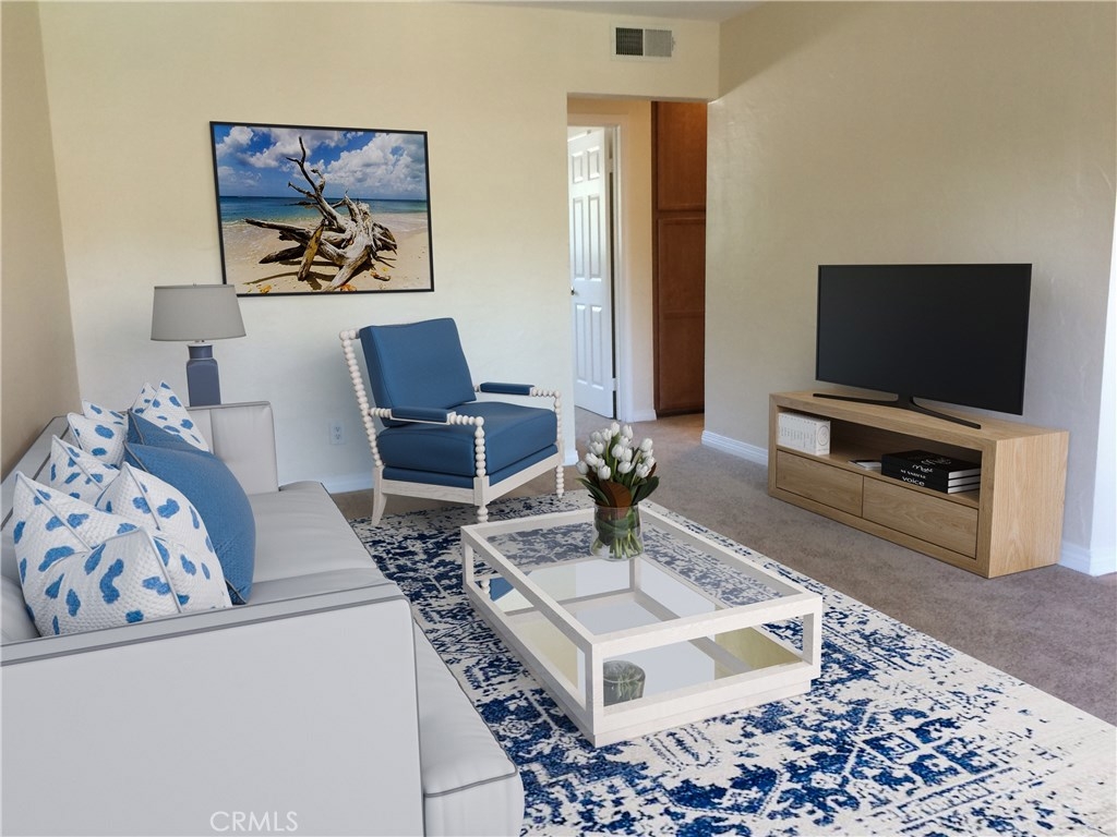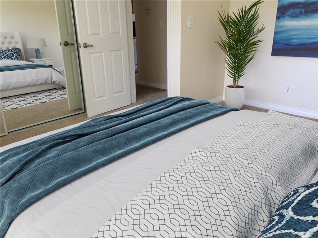 Lowest priced condo in La Habra. Cozy 1 bedroom condo in a great area of La Habra. Upstairs unit with no one above you. Beautiful granite counters in kitchen and bath. Mirrored closets in the bedroom. New carpet installed in December. Huge window facing the pool and BBQ area. This lovely condo comes with a designated carport and is just around the corner from the laundry room. HOA pays water, trash & gas. Enjoy the serenity of this forest like community where even the birds come home to relax. This home is great for the 1st time buyer or investor. Rooms have been virtually staged.