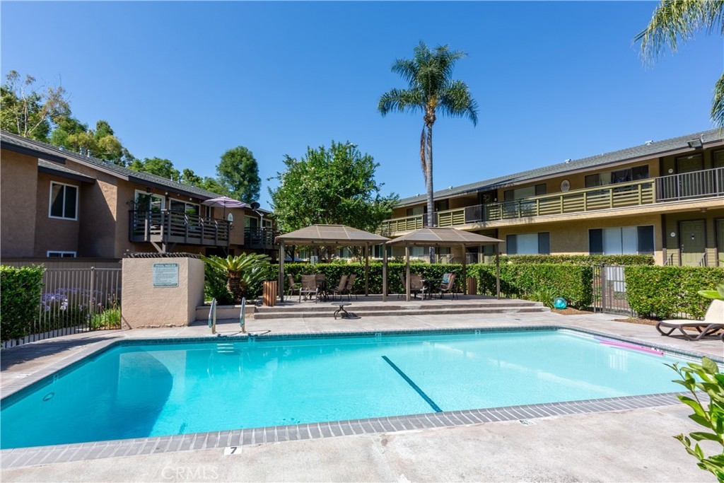 Step into your upgraded haven at Creekside Village! This captivating 2-bedroom condo offers a tranquil escape, where natural light cascades through oversized windows into the dining room, kitchen and spacious living room. Envision mornings spent savoring breakfast on your private and spacious balcony, as you move seamlessly from the the dining area, overlooking the inviting greenbelt and pool. Retreat to the main bedroom, boasting a generous walk-in closet and a luxurious bathroom adorned with Granite countertops and plenty of storage. With a second bedroom or den provides versatility with its large closet. Insulation and drywall have been added to the second bedroom ceiling. This is more than just a home—it's an oasis of luxury living. Explore the community's amenities, from the sparkling swimming pools to the charming BBQ areas, and discover a lifestyle of unparalleled comfort and convenience. This community offers gated parking ensuring a sense of security. With HOA covering fees for the essentials like water, trash, sewer, gas, and common area maintenance, living in Creekside Village is very affordable. The stage is set for effortless living in your own private paradise. Don't miss the opportunity to make this retreat yours!