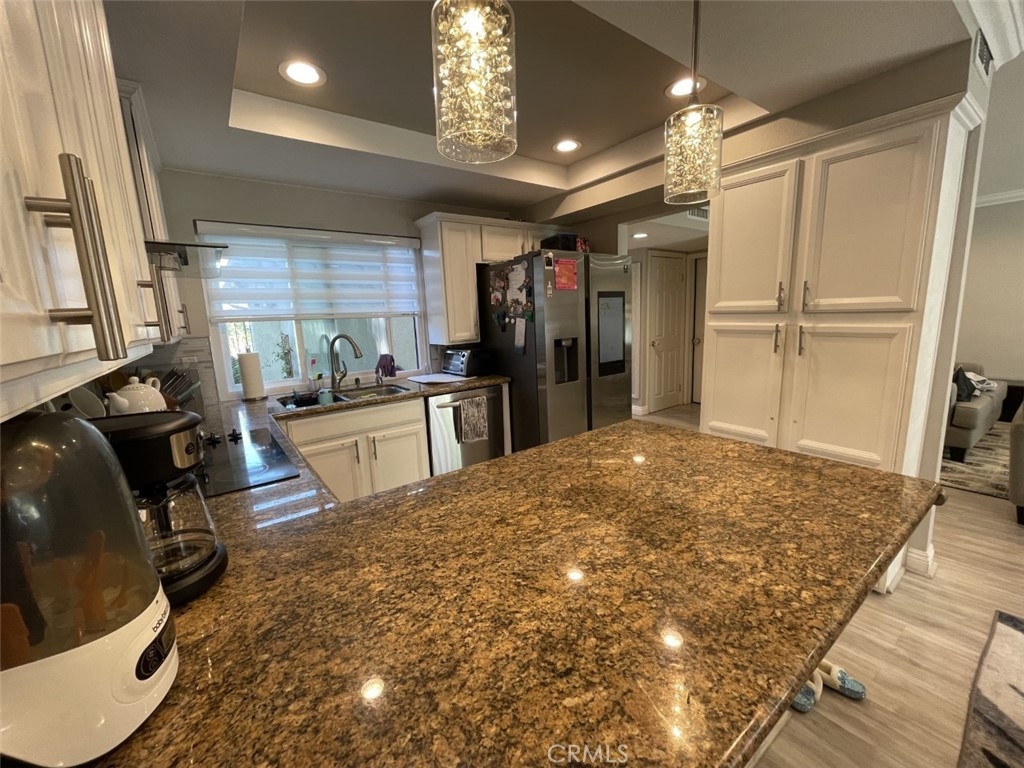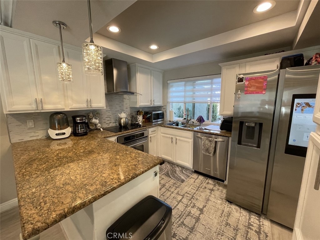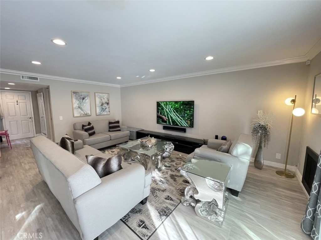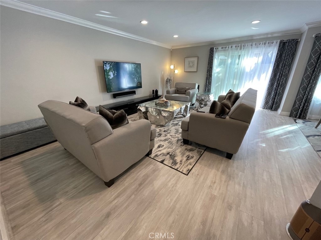 Highly upgraded luxury two story Townhome in the coveted Heritage Village! This floor plan features a gated courtyard entry, 2 car attached garage w/ smart garage door, and a large private patio with turf and vinyl fencing. The kitchen is open and bright and includes Stainless Appliances and stone countertops. The Spacious living and dining room are great for entertaining. Upgraded Wood Laminate Plank flooring throughout, baseboards, Crown Moulding and newer dual pane windows and slider. Large master suite with walk in closet and remodeled bath with separate shower and Jucuzzi tub. Extra features include Central heat and AIR with UV Filter and air Scrubber and Smart Thermostat. Simply safe system and smart doorbell. Washer, dryer and Refrigerator included! HOA provides high-speed internet and cable tv!!! Heritage Village has well-maintained grounds, guest parking, a pool, spa, playground, and green spaces. Close to great shopping and entertainment, do not miss this great place to call home!
