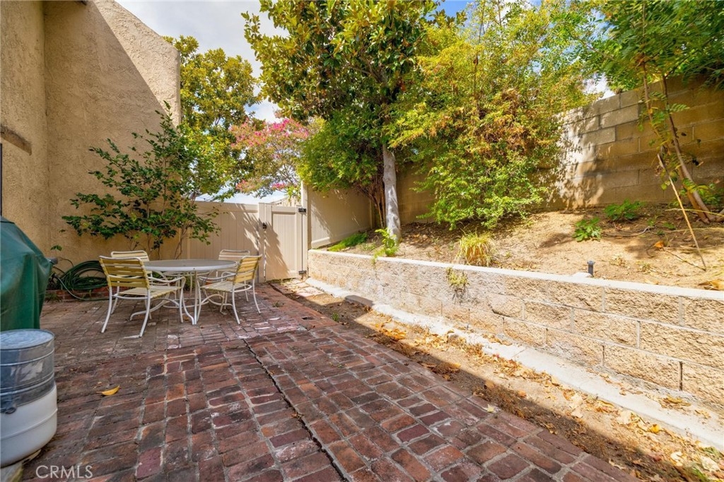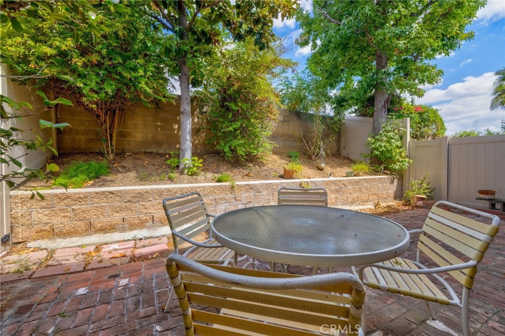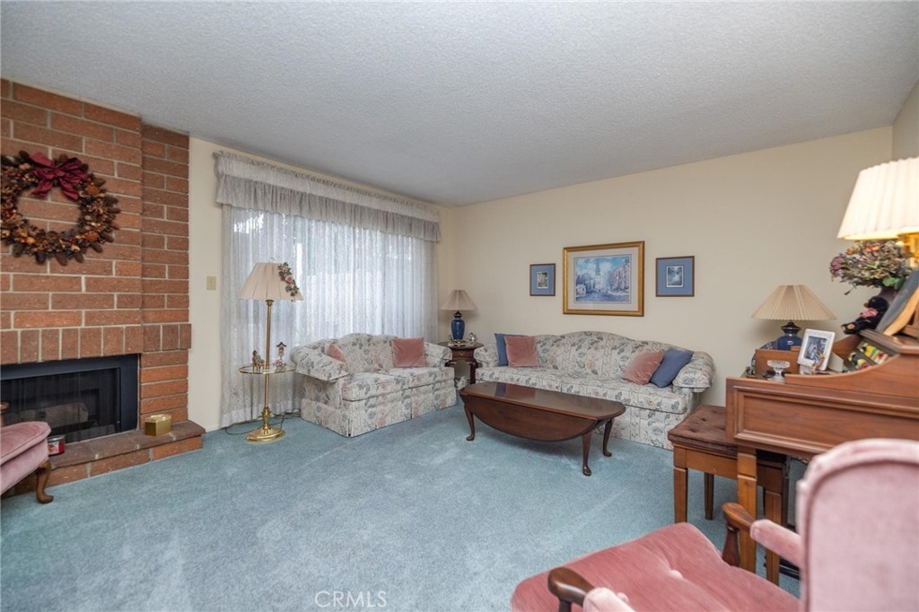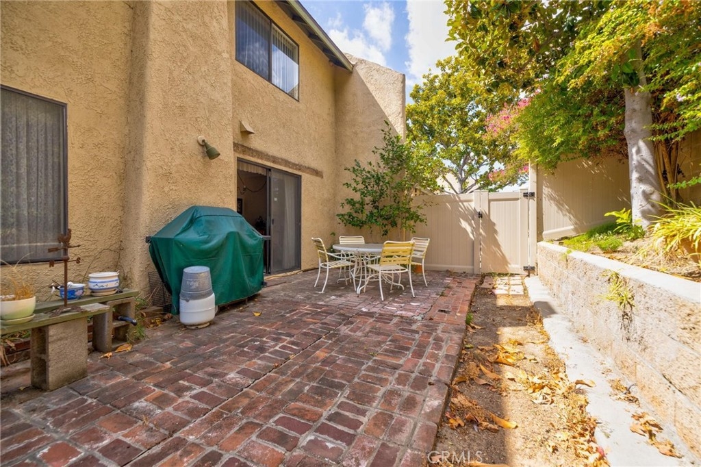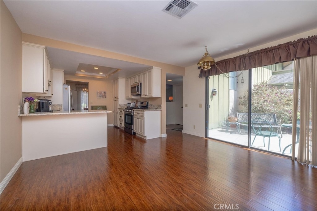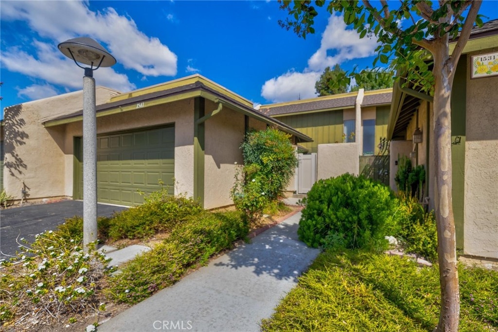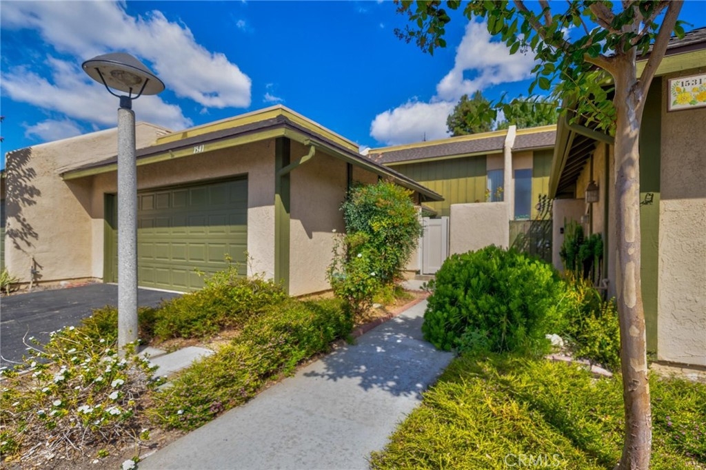 This 1,476 sq.ft. 2 bedroom, 1 1/2 bathroom home in the Heritage Village community will charm you. Enter a private front patio with dappled sunlight and space for gardening. Opening the front door you'll see the spacious light-filled living room with a fireplace. On the left is the kitchen, remodeled with handsome ivory cabinetry and striking granite countertops and breakfast bar in tones of cream and caramel with stainless steel Samsung microwave, gas range, refrigerator and dishwasher. Off the kitchen is a generous open family room with access from sliding glass door to the front patio. There is a downstairs 1/2 bathroom and laundry area. Laminate wood flooring is throughout the kitchen, family room, and laundry area. On the other side of the kitchen is the dining room which has access to the back patio. Upstairs are 2 bedrooms, each with large double door closets. The upstairs bathroom has a new vanity and granite countertop with a double sink and a sparkling new shower. This home has an efficient and warm layout, and is rounded out with an attached garage. The Heritage Village community features a pool, spa, jungle gym and community center with lots of space and its own kitchen.