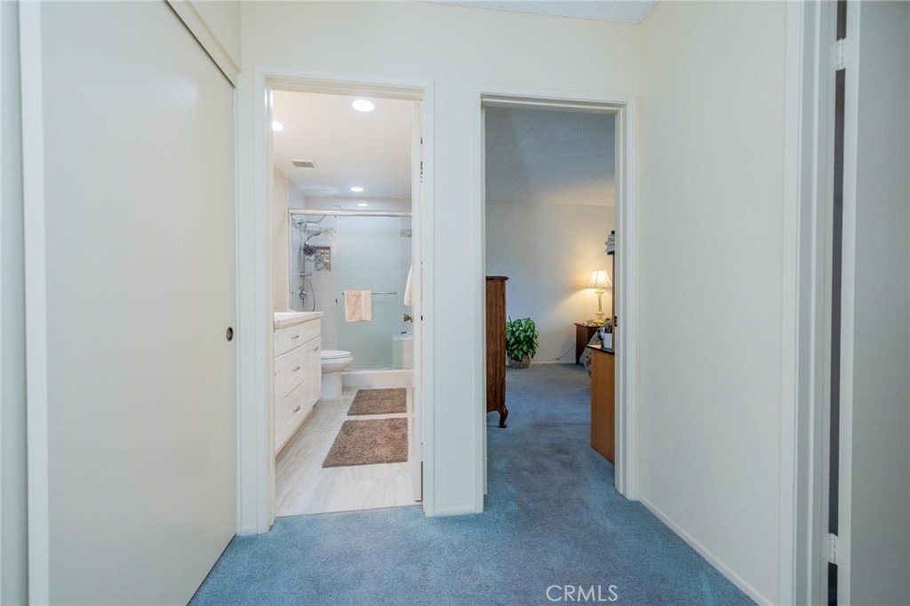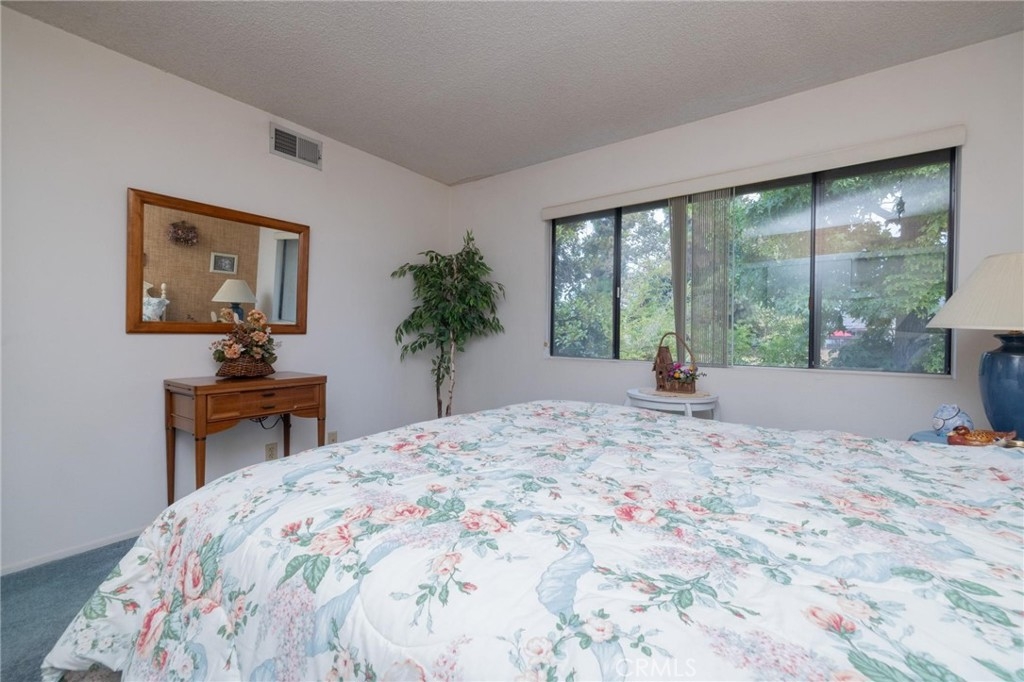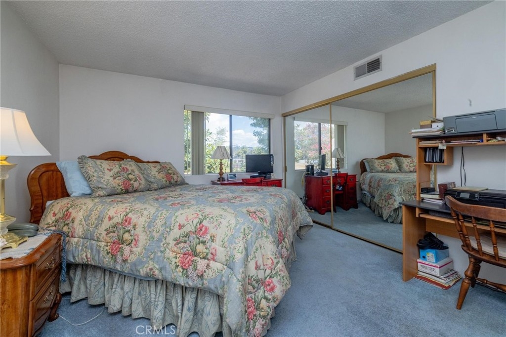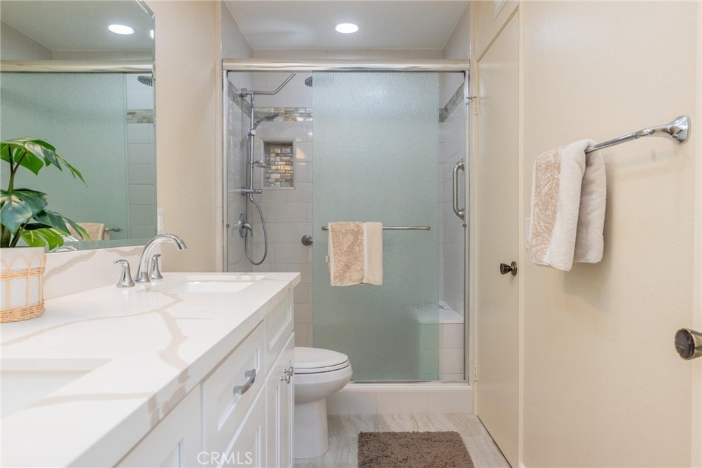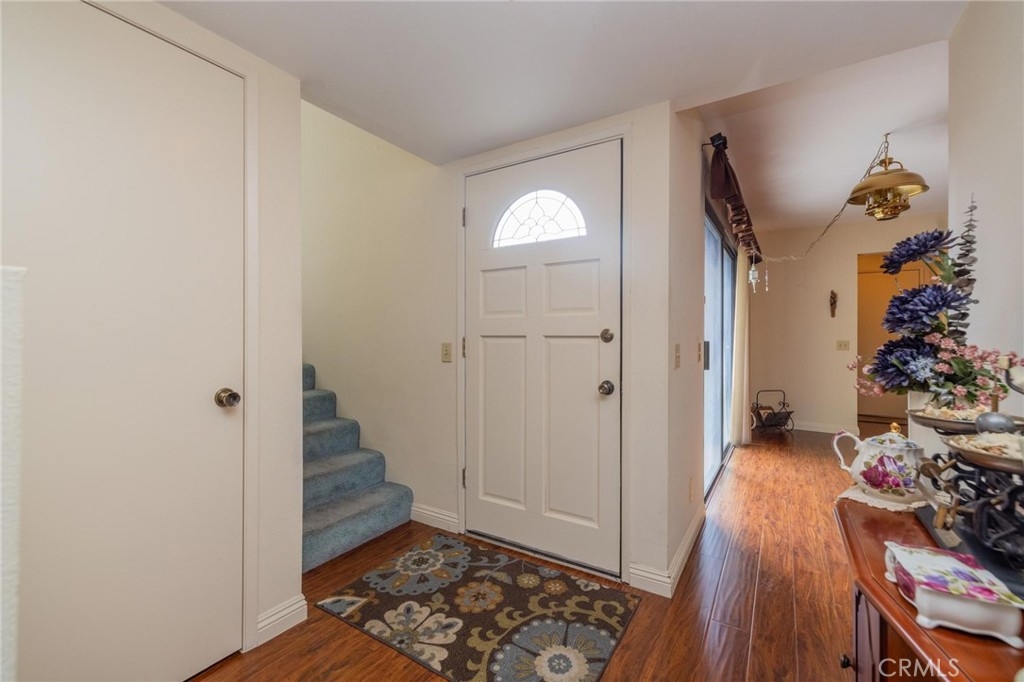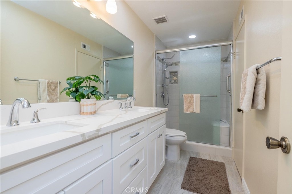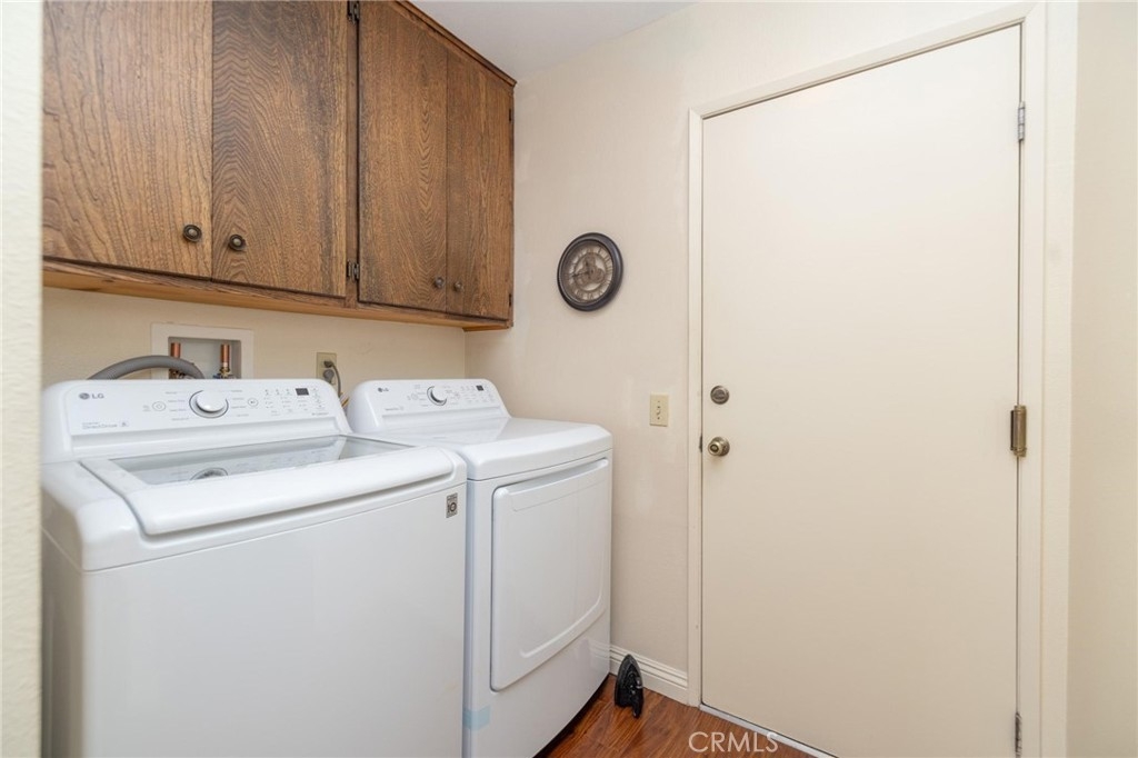 This 1,476 sq.ft. 2 bedroom, 1 1/2 bathroom home in the Heritage Village community will charm you. Enter a private front patio with dappled sunlight and space for gardening. Opening the front door you'll see the spacious light-filled living room with a fireplace. On the left is the kitchen, remodeled with handsome ivory cabinetry and striking granite countertops and breakfast bar in tones of cream and caramel with stainless steel Samsung microwave, gas range, refrigerator and dishwasher. Off the kitchen is a generous open family room with access from sliding glass door to the front patio. There is a downstairs 1/2 bathroom and laundry area. Laminate wood flooring is throughout the kitchen, family room, and laundry area. On the other side of the kitchen is the dining room which has access to the back patio. Upstairs are 2 bedrooms, each with large double door closets. The upstairs bathroom has a new vanity and granite countertop with a double sink and a sparkling new shower. This home has an efficient and warm layout, and is rounded out with an attached garage. The Heritage Village community features a pool, spa, jungle gym and community center with lots of space and its own kitchen.