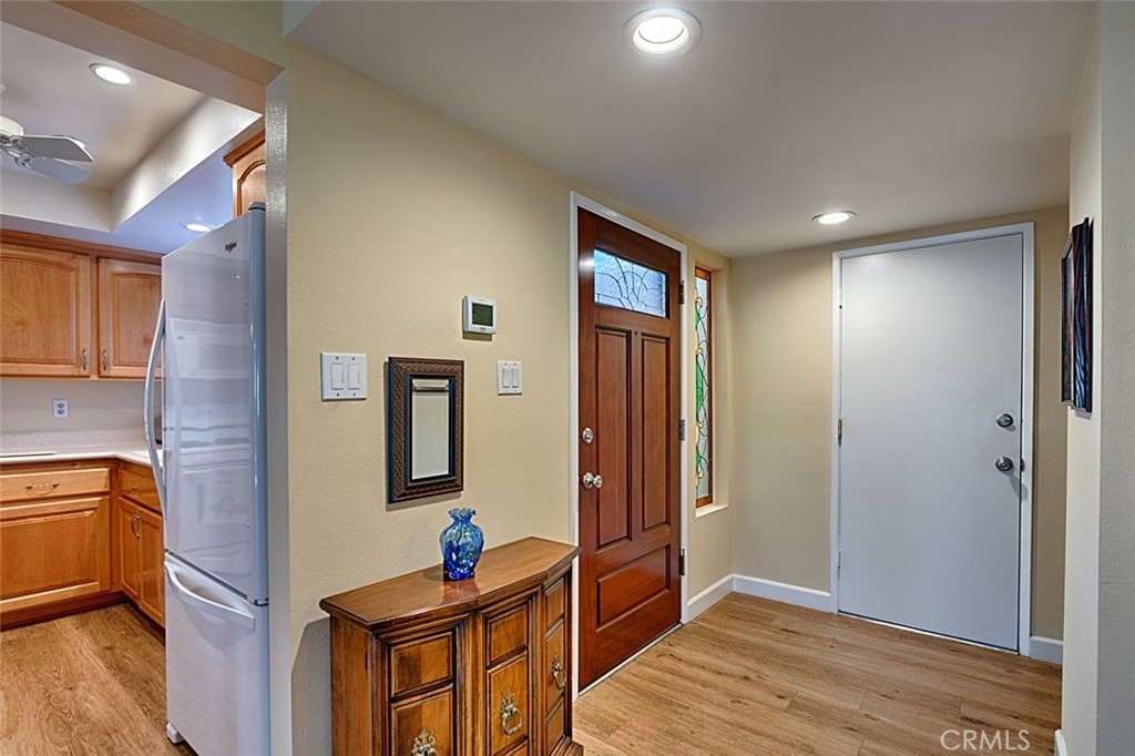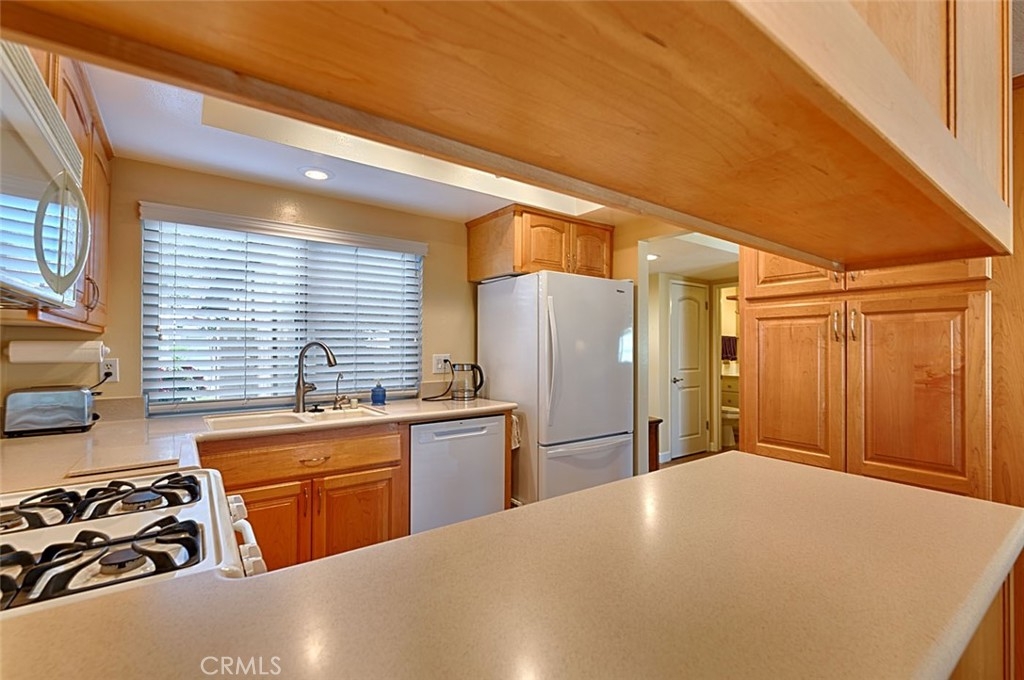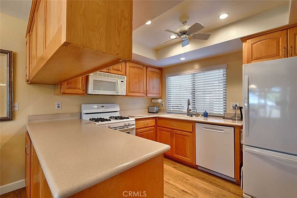 Move-In Ready with Stylish Upgrades and Thoughtful Touches Throughout. This beautifully updated home offers a perfect blend of comfort, style, and convenience. With soft touches throughout, the residence features a modernized kitchen with newer cabinets, upgraded counters, and dual-pane windows that fill the space with natural light. Enjoy fresh interior paint, smooth-finished ceilings, recessed lighting, and upgraded flooring with new baseboards—every detail has been thoughtfully curated. Both bathrooms have been tastefully renovated, and additional upgrades include custom closet inserts and a water softener. Step outside to a charming slate-covered patio with a new wood lattice cover—perfect for relaxing or entertaining. Enjoy peace of mind and year-round comfort with a new AC unit and ductwork installed in 2023, plus a new water heater. The HOA provides exceptional value, covering water, trash, cable TV, internet, landscaping, building maintenance (including roof replacements), termite control, exterior painting, stucco repair, fencing, and overall exterior upkeep. Community amenities include: A spacious clubhouse, Two playgrounds, Two swimming pools and a relaxing spa, Conveniently located near restaurants, shopping centers, and everyday necessities, this home combines modern living with a welcoming community atmosphere. Washer, dryer, and refrigerator may be included with the purchase by mutual agreement.