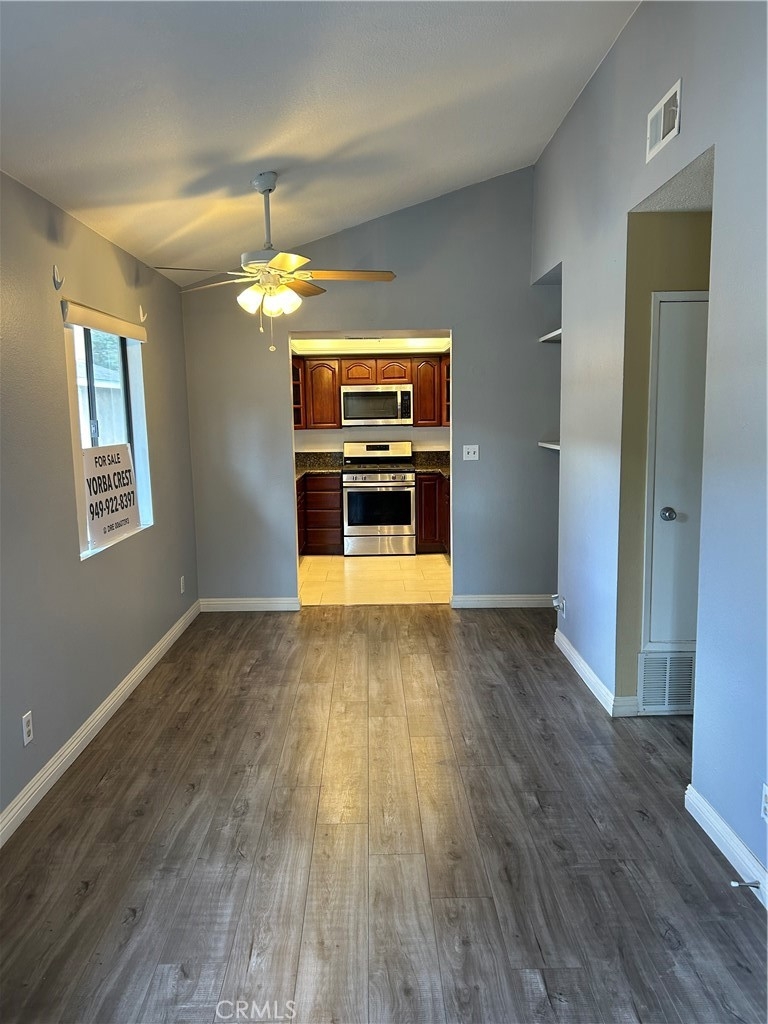 GORGEOUS CONDO ON THE SECOND FLOOR SITTING OVER THE TWO CAR GARAGE. THE LIVING ROOM FEATURES A FIREPLACE WITH SURROUNDING WINDOWS FOR A GREAT VIEW. THE KITCHEN IS UPDATED WITH DARK WOOD CABINETS AND STAINLESS STEEL APPLIANCES. THE STACKED WASHER/ DRYER ARE INCLUDED WITH THE UNIT AND LOCATED IN THE HALLWAY THAT LEADS TO THE LARGE TWO BEDROOMS. CEILING FANS THROUGHOUT, UPDATED VINYL FLOORING! NEAR CAL STATE FULLERTON, SAINT JUDES HOSPITAL AND MORE!