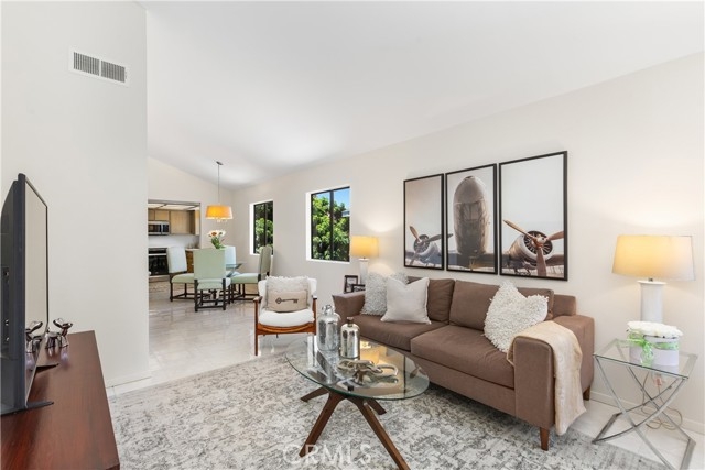 Nestled on a tree-lined street offering privacy and tree views, this home’s desirable open layout with all living space on one level makes a striking impression and offers designer upgrades that reveal pride of ownership surpassing every home in this price range. Inviting entry welcomes guests upstairs where dramatic soaring ceilings and walls of windows offer trees views, lots of natural light and a warm and cozy fireplace. Chef-inspired kitchen features quartz countertops with backsplash, new stainless appliances and a large stainless steel sink with new faucets overlook casual dining and the living room. Luxurious master suite with spa-like bath is a serene retreat to relax and recharge with rich designer touches. Large secondary bedroom, convenient indoor laundry and attached two-car garage enrich your life and your home’s value and offer comfortable living space for everyone. This home is a rare opportunity at this price.