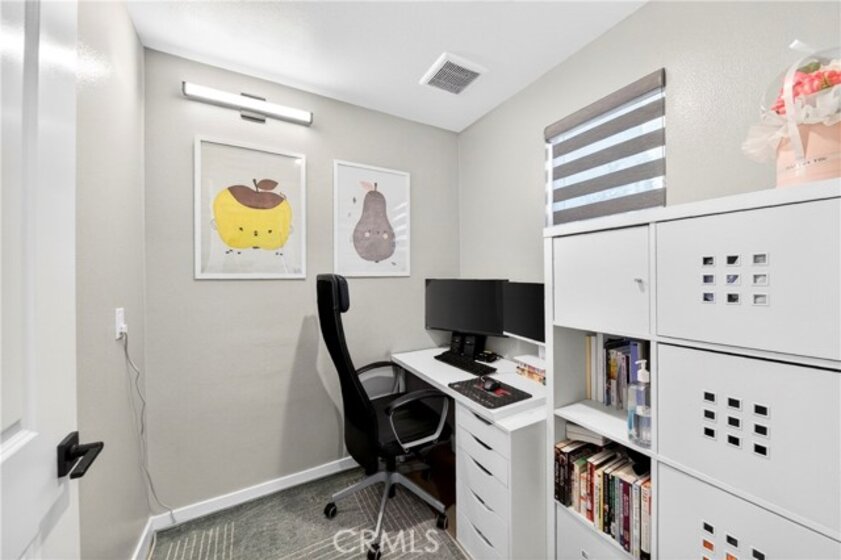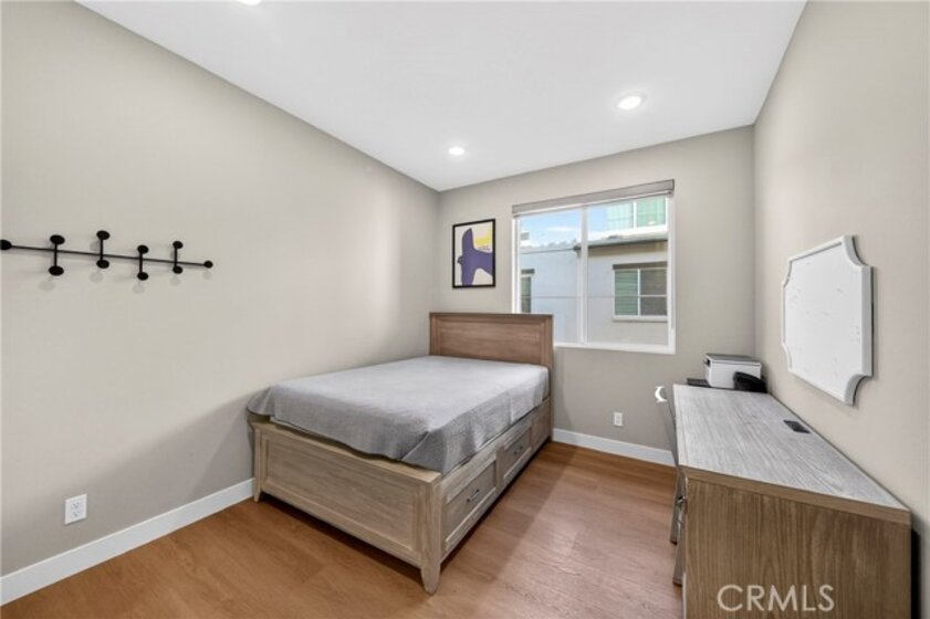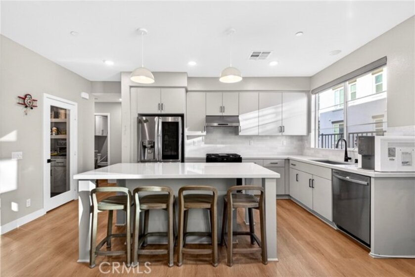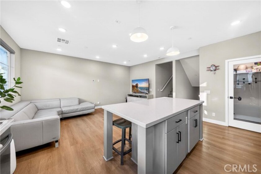 Welcome to this beautifully upgraded 2023 built home in the highly desirable gated community of Vista Walk in the heart of La Habra. This home offers approximately 1,585 square feet of thoughtfully designed living space, featuring 3 bedrooms plus a den, with each bedroom offering its own private en-suite bathroom. With over 50K in upgrades, this home shows modern designer finishes throughout. The open concept main level features upgraded flooring throughout, quartz countertops, a custom white tile kitchen backsplash, and a full cabinetry upgrade to sleek flat slab gray doors for a clean, contemporary look. The spacious kitchen includes an island perfect for dining and entertaining, a large walk-in pantry, and flows seamlessly into the living and dining areas. On the first level, the den can be used as a home office, along with a private enclosed patio overlooking the picnic area. The mid level includes the main living area and a full bedroom with en-suite bath, ideal for guests or multi generational living. The upper level features the primary suite with a large walk-in closet and appointed bath, as well as a secondary bedroom with its own en-suite bath and walk-in closet. A conveniently located laundry area completes the upper level. Vista Walk is a newer gated community offering amenities including an outdoor dining and BBQ area, ping pong tables, ample guest parking, and EV charging stations. Conveniently located near shopping centers, markets, restaurants, and schools.