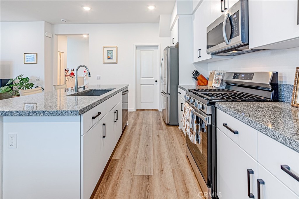 Welcome to this beautifully upgraded 2023-built home located in the desirable Vista Walk community of La Habra. This residence features 3 bedrooms, 2.5 bathrooms, and 1,374 square feet of living space, and comes fully equipped with solar panels. The home offers a move-in-ready condition with extensive upgrades throughout, including upgraded flooring, dual-pane windows, fresh interior paint, a custom kitchen island, an open and spacious floor plan, and a private balcony. Situated within a gated community, the property provides enhanced privacy and security while being conveniently located near shopping centers, markets, and schools. All bedrooms are located on the third level, while the second level features the kitchen, living room, dining area, balcony, and a dedicated laundry room with washer and dryer included. This condo is located very inside of the community and corner unit ! 2 guest parking spots are right next to the condo , EV chargers are in community and premium location! Additional community and home features include a tankless water heater, BBQ area, dog park, and ample guest parking. This is an excellent opportunity to own a modern, well-maintained home in a highly convenient location. Video Link - https://vimeo.com/1148513932