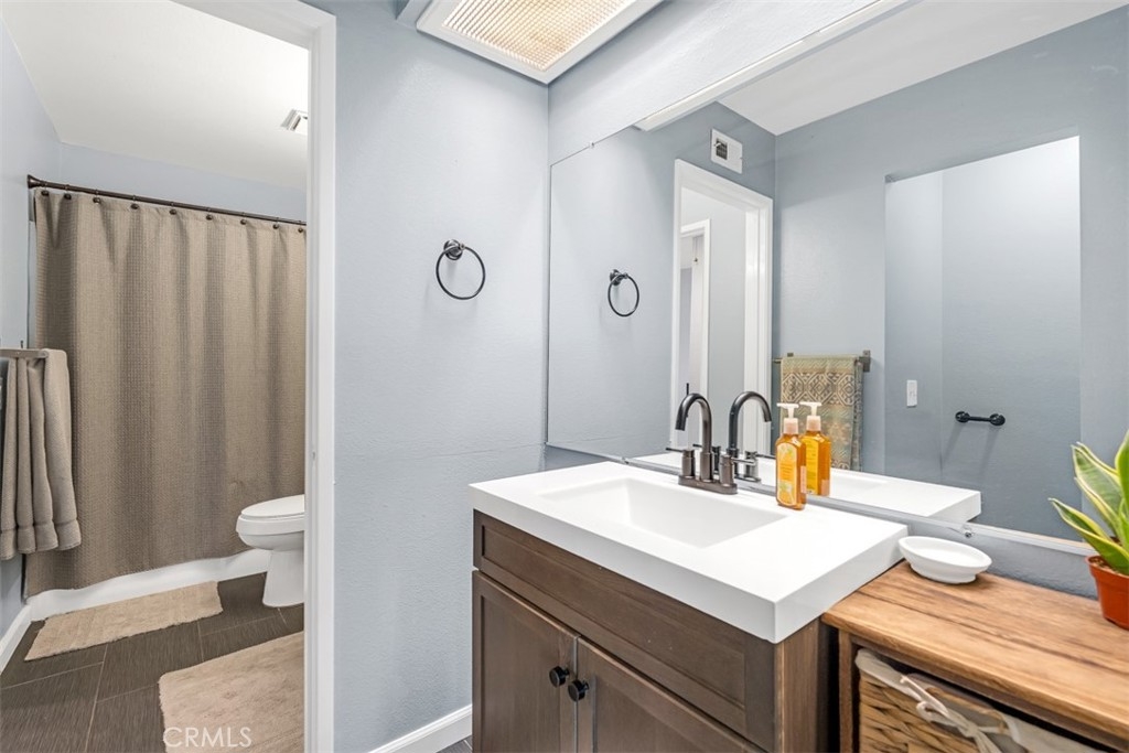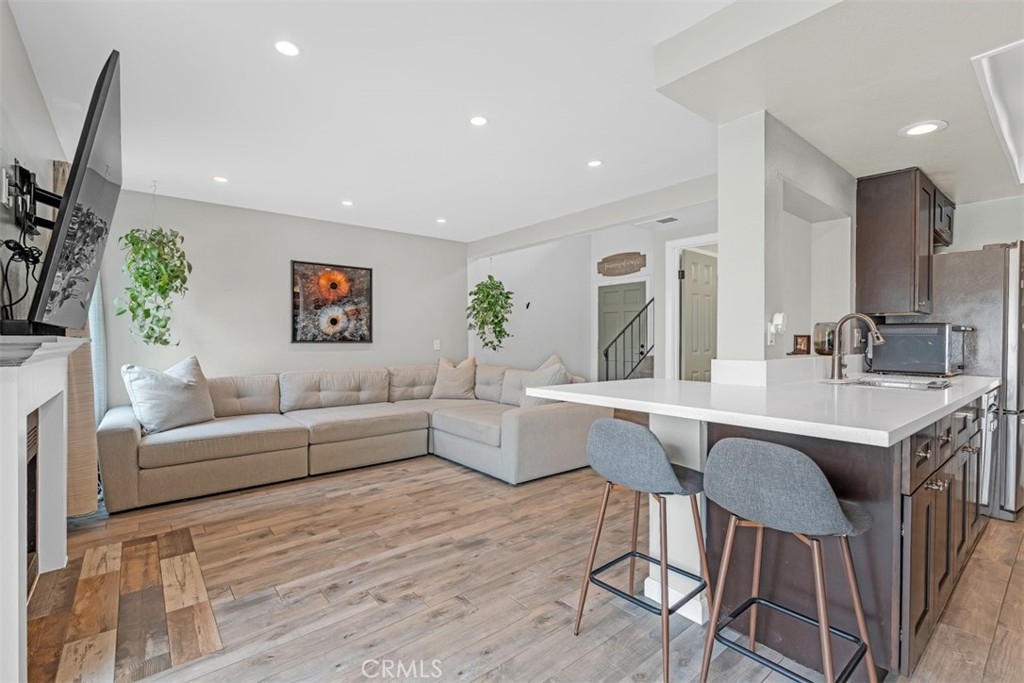 Welcome to this spacious, 1,213 SF, two story condo in La Habra. Beautiful high vaulted ceilings give a grand open feel throughout. The living room features a gas fireplace, large glass sliding doors that lead out to your beautifully landscaped patio with new fencing, Pergola, and newer ash turf grass. The roomy kitchen is ideal for any cook to entertain, including a kitchen pantry, stainless steel appliances, quartz countertops and recessed lighting. Upstairs you will find a large primary suite , and a second bedroom/office. Total baths are three. All windows including sliding glass doors have been upgraded, all dual pane glass, energy efficient. This condo is not short of storage space, a large attic with pull down ladder access is ideal. Low monthly HOA's cover water, trash and outside grounds. Parking is no problem with one attached garage and your very own carport space. Please don't miss your opportunity to come see this gem!