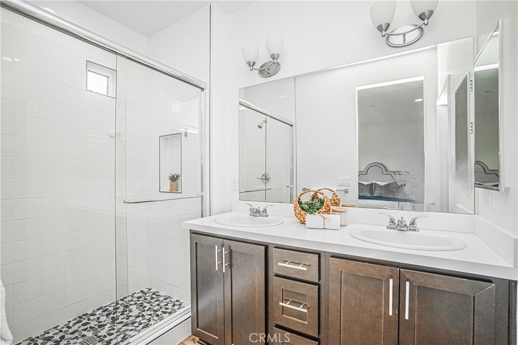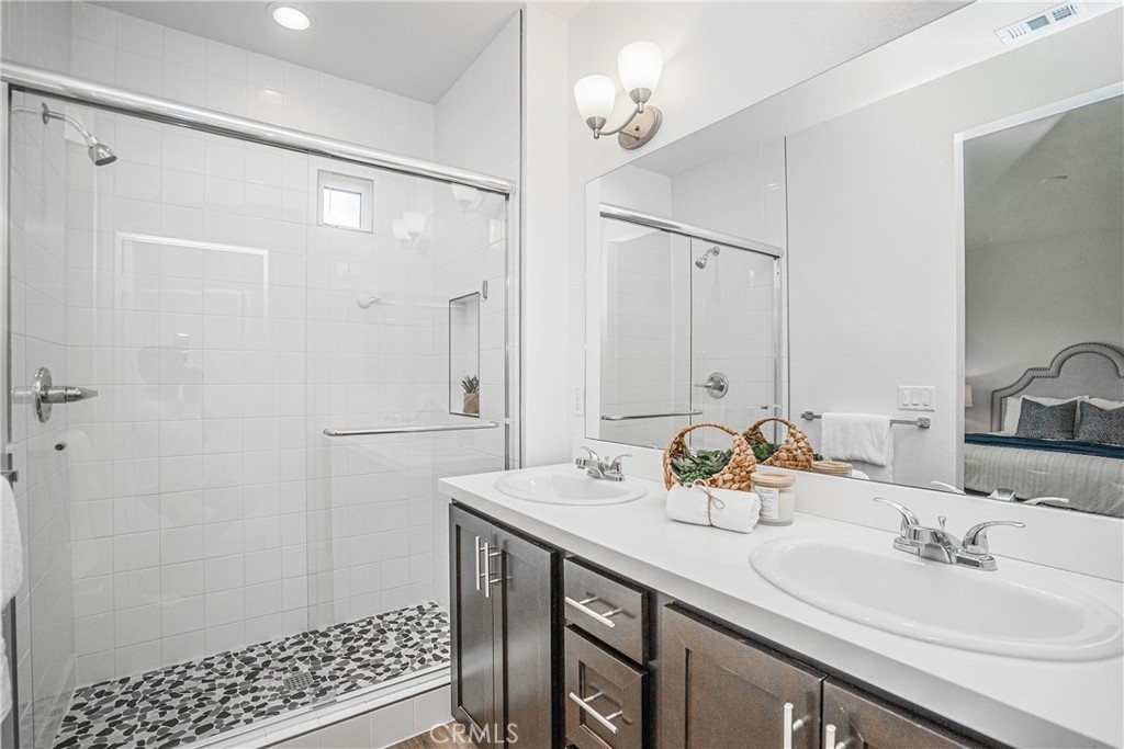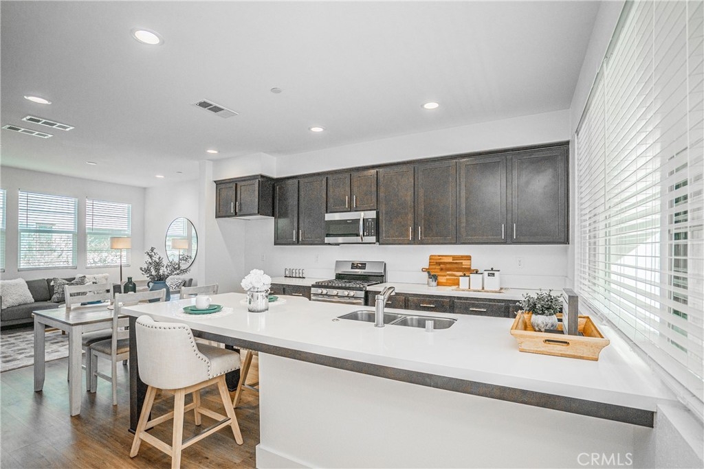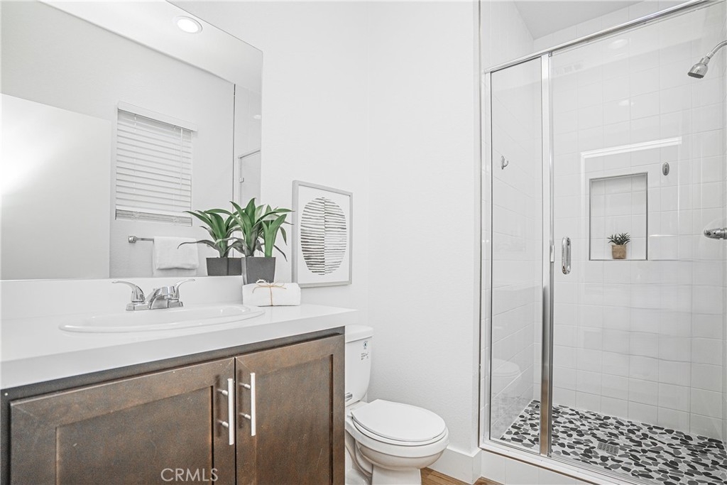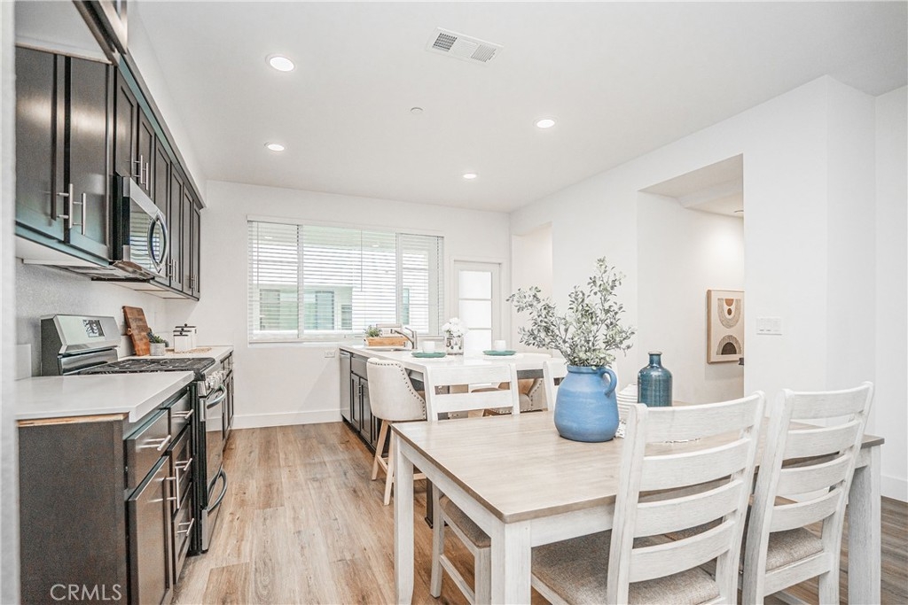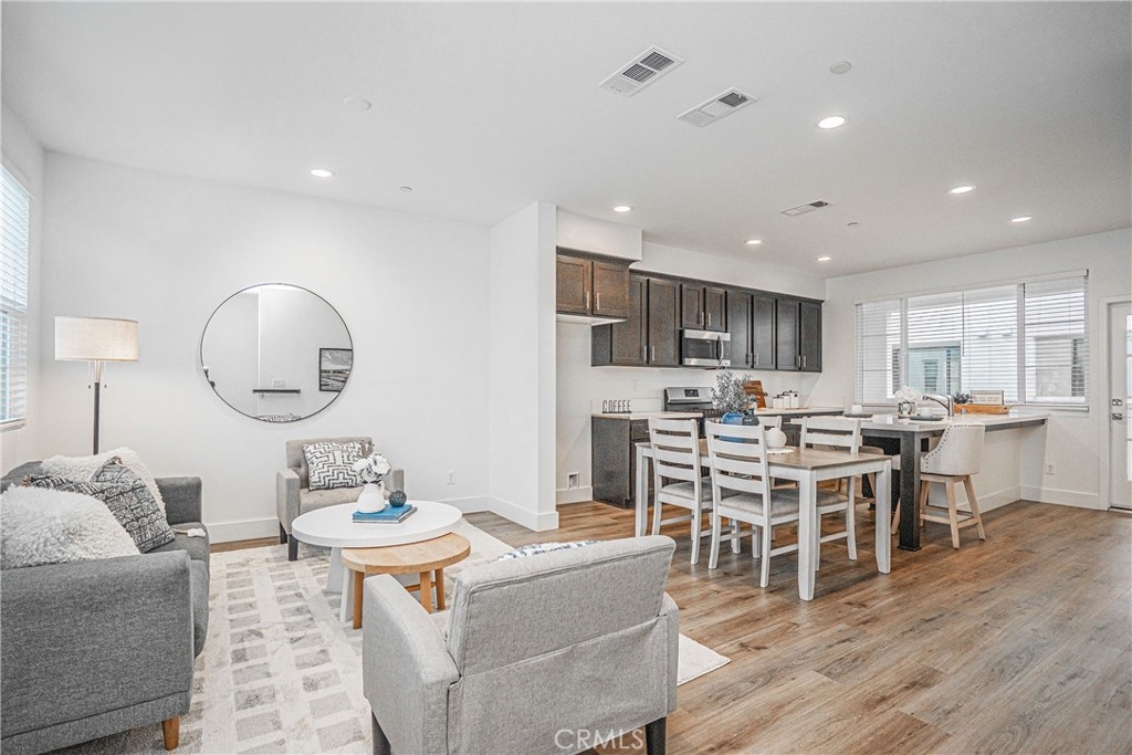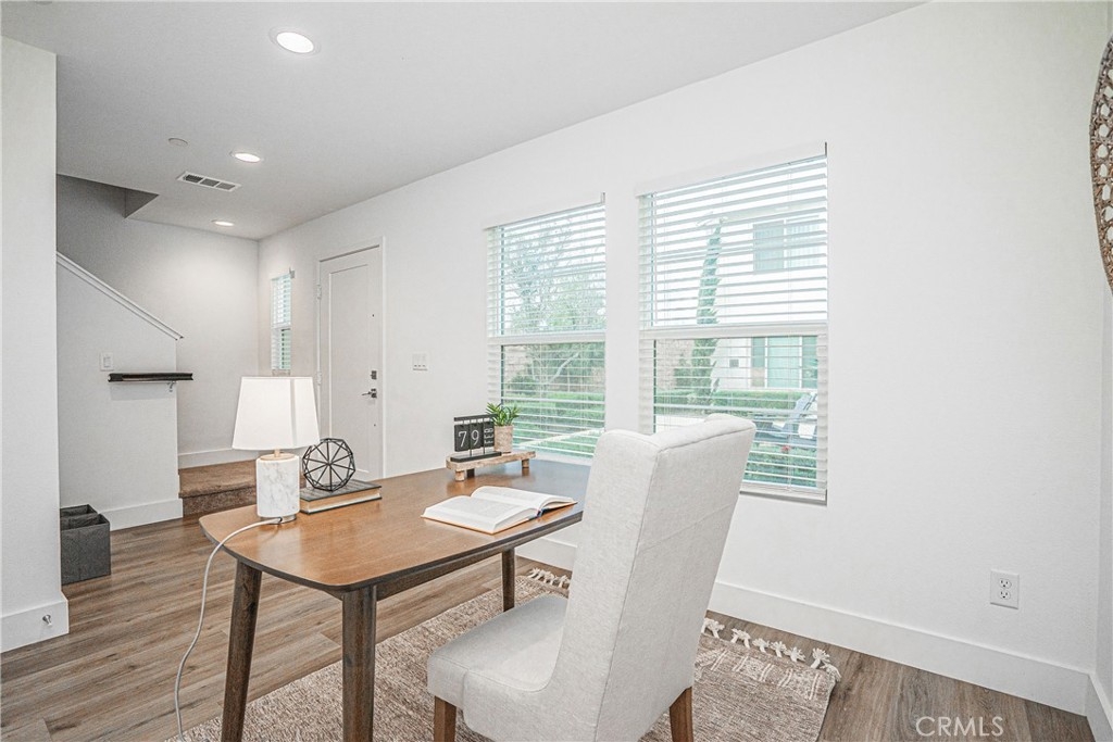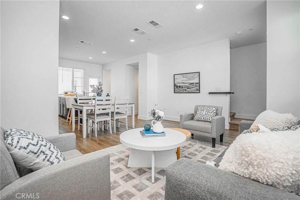 Move-In Ready Townhome in the Volara Community. Discover modern living in this beautifully designed townhome, built in 2023 by Bonanni Development and situated in the desirable Volara community. This exceptional residence features PAID-OFF SOLAR PANELS, offering energy efficiency and long-term savings. Upon entry, a versatile bonus room/home office provides the perfect space for remote work or additional living needs. The direct-access, side-by-side two-car garage includes an EV circuit, ensuring convenience for electric vehicle owners. The main living area boasts an open-concept Great Room with a private walk-out deck, ideal for relaxation or entertaining. A gourmet kitchen showcases a spacious island, quartz countertops, and state-of-the-art stainless steel appliances, combining style and functionality. A powder room is also conveniently located on this level. Upstairs, dual primary suites each feature generous closet space and en-suite bathrooms, providing comfort and privacy. Premium finishes throughout the home include luxury vinyl plank flooring and contemporary design elements. With low HOA dues of just $215/month, this home offers an excellent value in a vibrant neighborhood. La Habra’s prime location provides access to numerous parks, the renowned La Habra Children’s Museum, and the highly rated Sonora High School. Additionally, shopping centers, banks, restaurants, grocery markets, transportation options, and golf courses are all just minutes away. Don’t miss the opportunity to own this exceptional home! Schedule a private showing today.