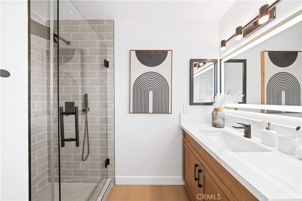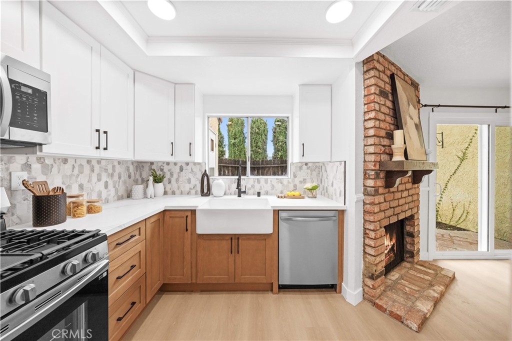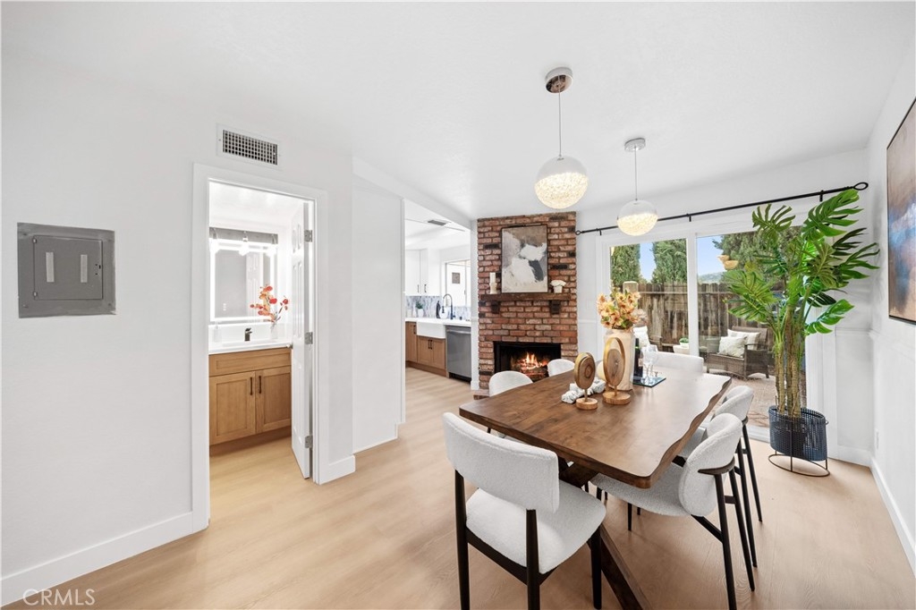 This is a beautifully renovated, bright home located in one of the most sought-after communities in La Habra. The entire house features a modern Scandinavian minimalist style with clean, elegant colors, a charming red-brick fireplace, and abundant natural light flowing throughout. Surrounded by lush greenery, the home feels peaceful and comfortable. It offers three bedrooms and two and half bathrooms, a refreshed kitchen, and a spacious laundry room. Two of the bedrooms enjoy distant views of the Whittier Hills, making it a wonderful place to live and relax. The property comes with one garage, one carport. It offers convenient access to major roads, and nearby shopping centers and restaurants make everyday living extremely easy. The spacious private patio is serene and surrounded by various plants—perfect for unwinding, hosting family gatherings, and enjoying all kinds of entertainment. Don't miss out on this opportunity!